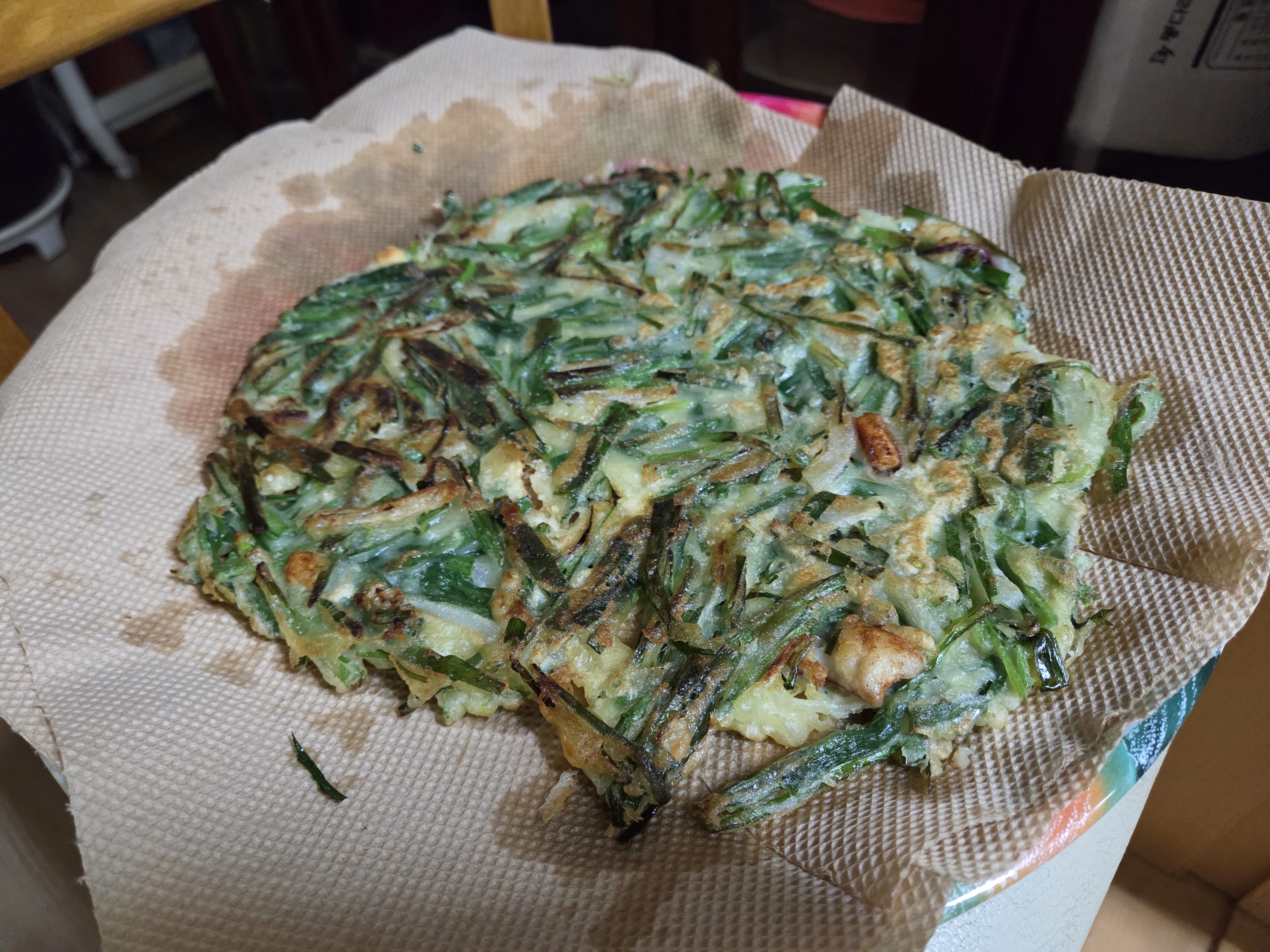 "비가 오는 날에 부추전이라니 딱이네요~"
