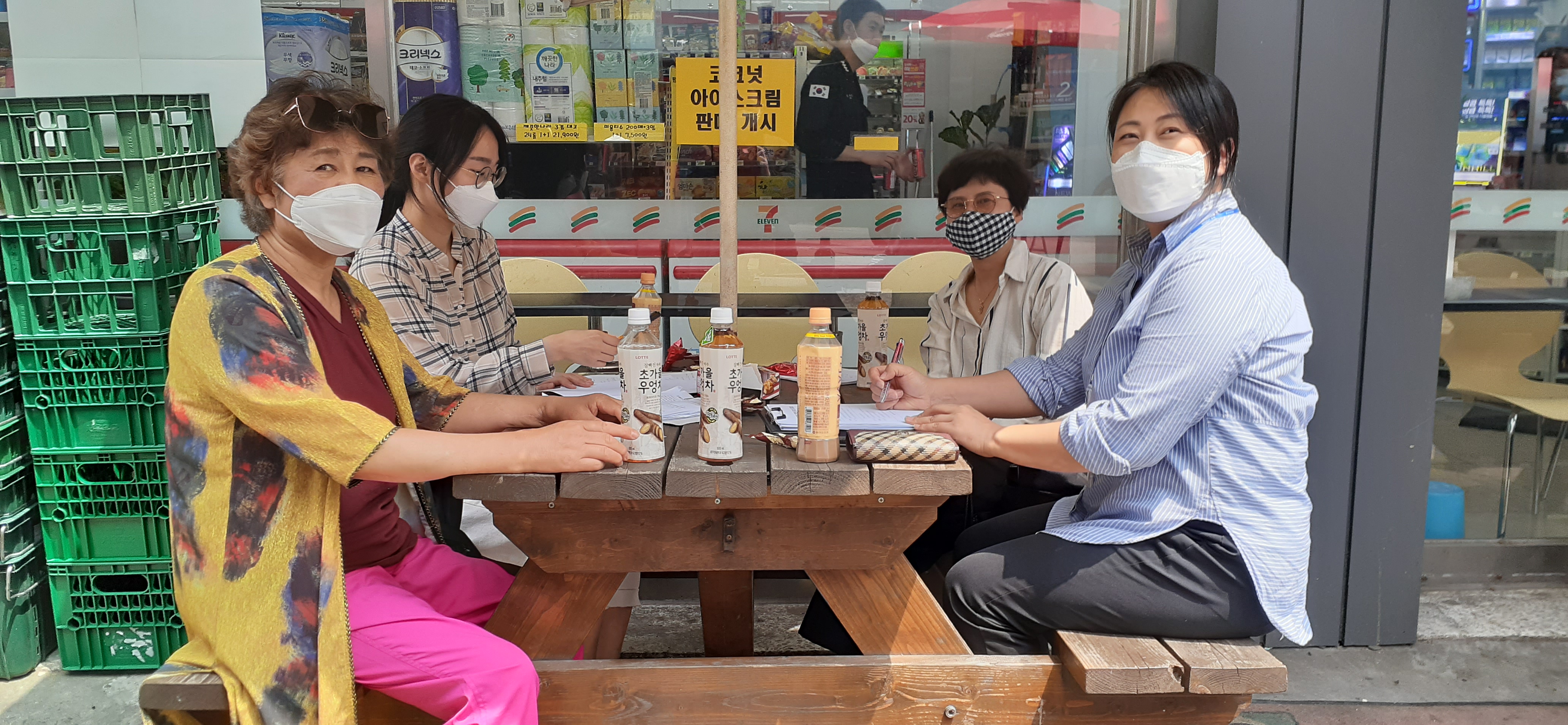 은행단지의 카페가 문을 닫아 옆 세븐일레븐 편의점에 자리를 잡았는데요.