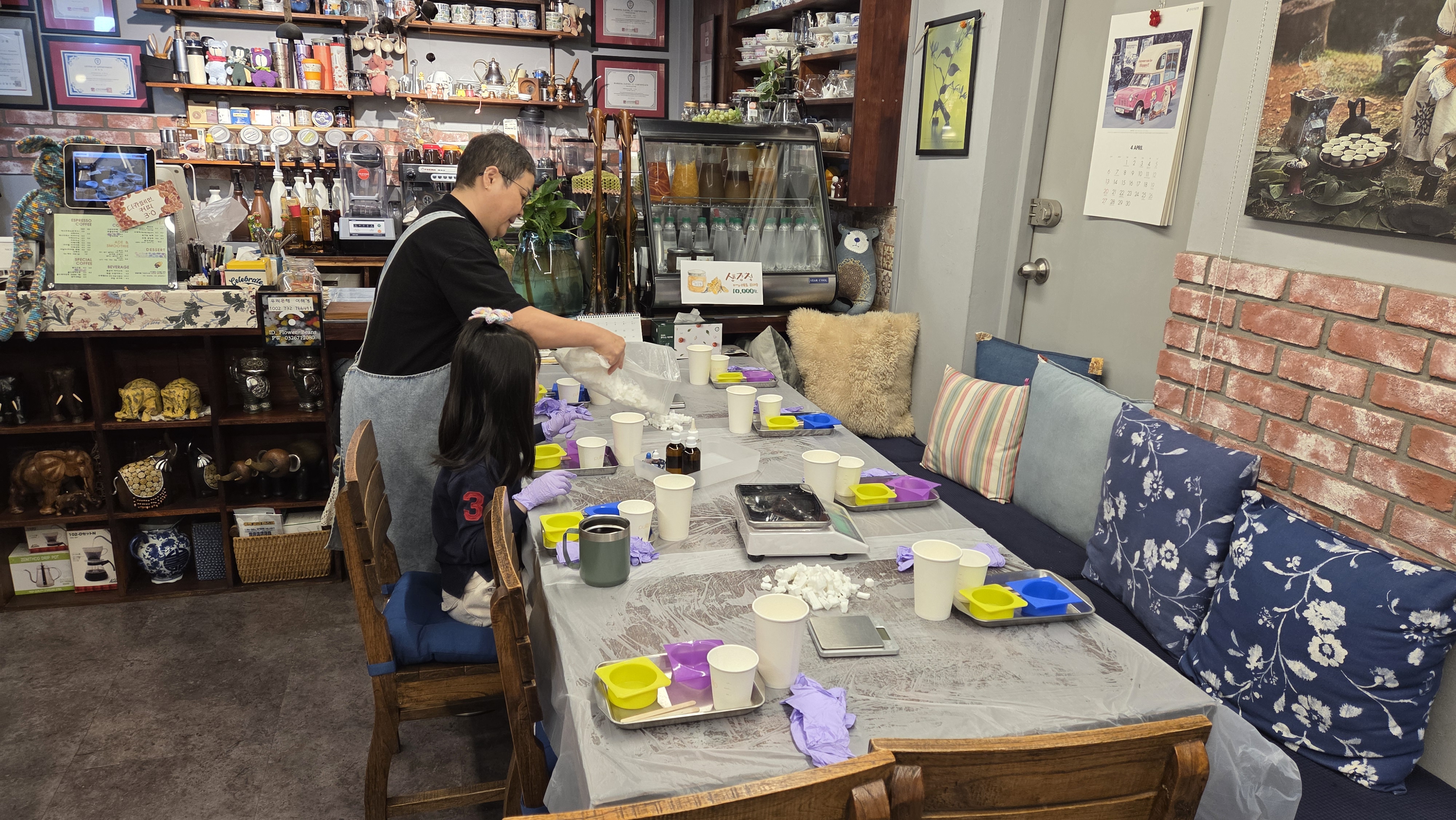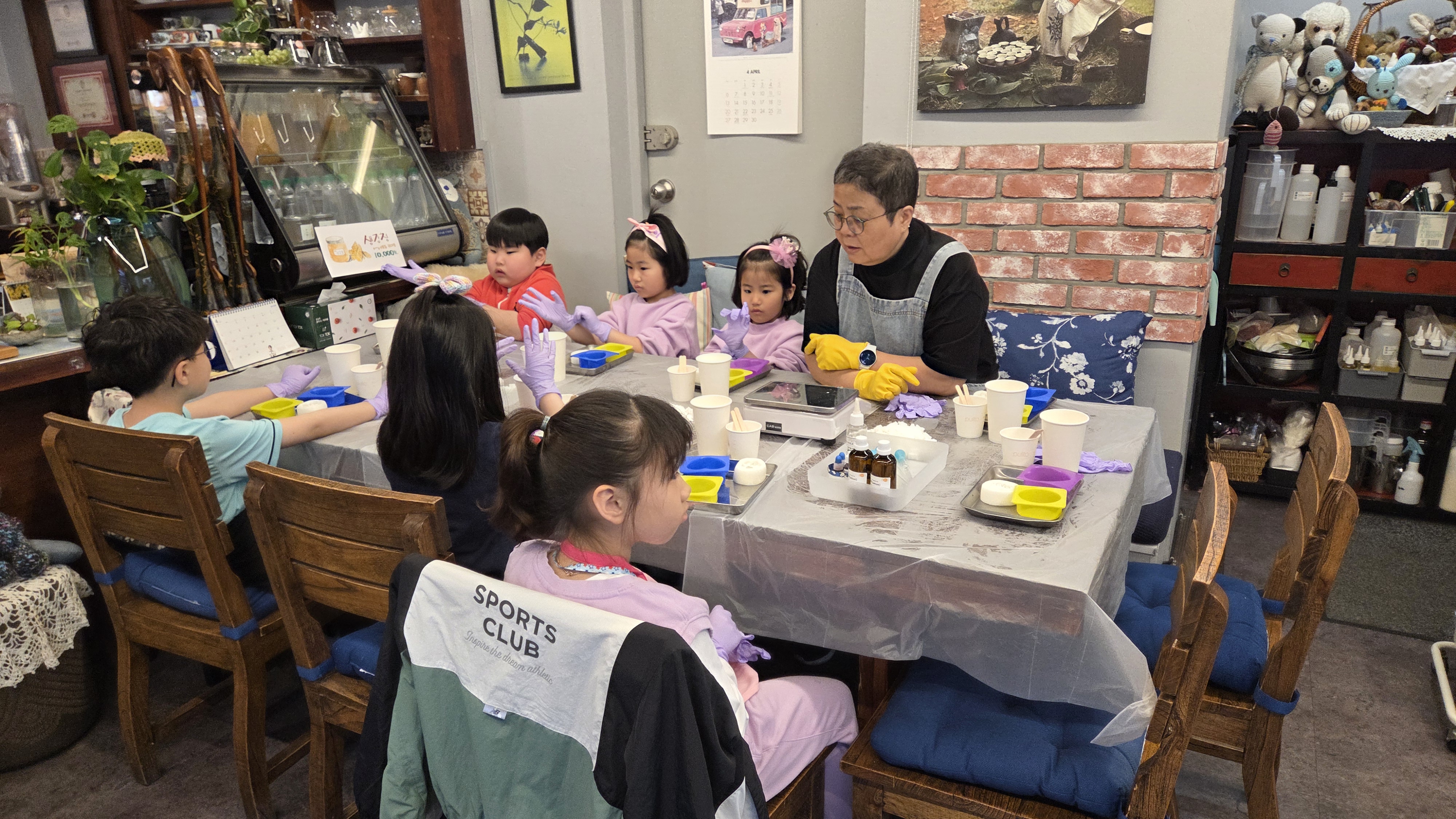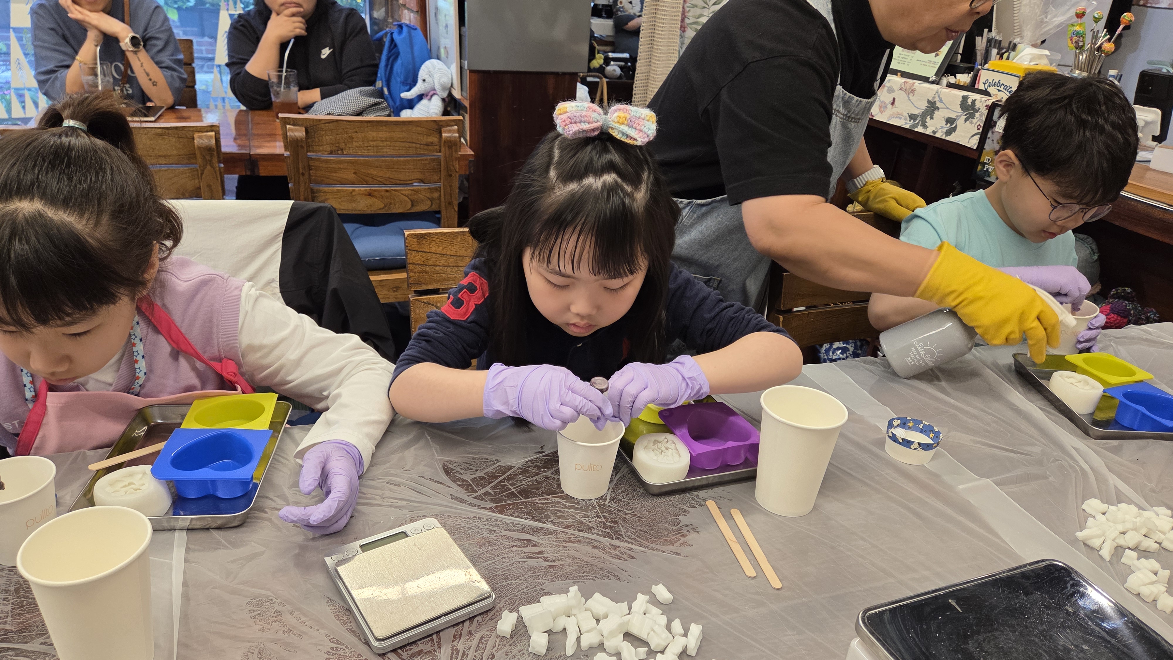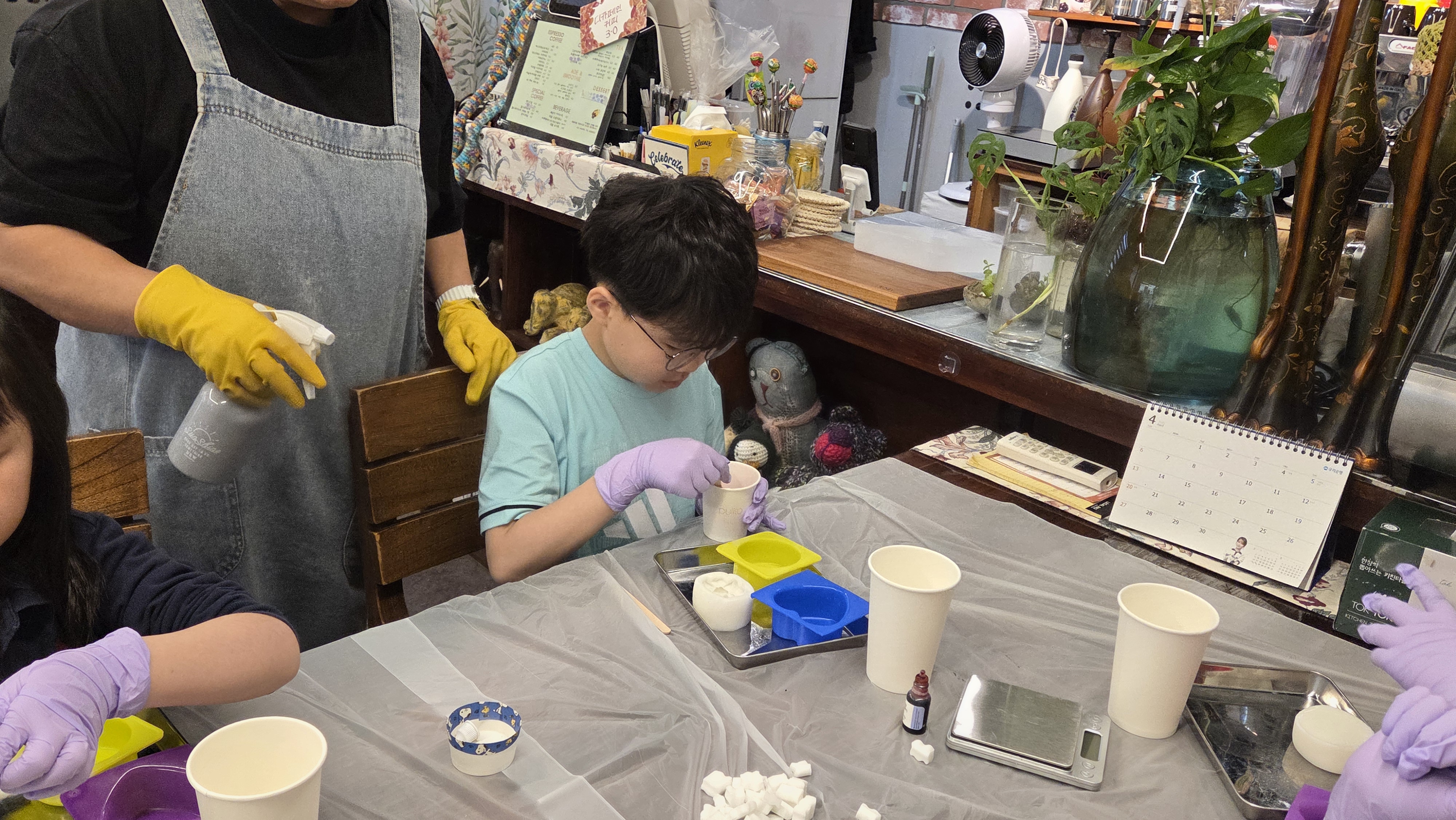 활동장소이자 선생님이 계신 카페 꽃앤콩에 갔더니 아침 일찍부터 비누만들기를 위해 분주하셨습니다.
