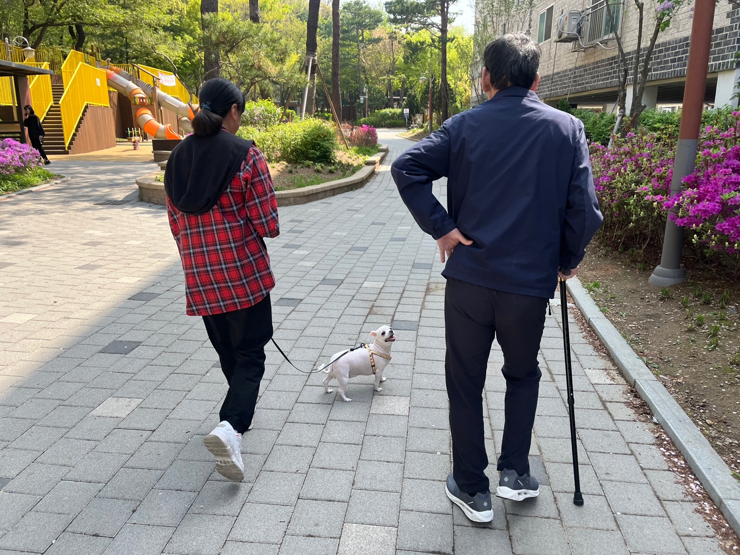 행복해하는 사랑이를 보며 어르신과 서희의 기분이 더 즐겁습니다. 셋이 여름이 오기 전, 또 산책하기로 약속했습니다.