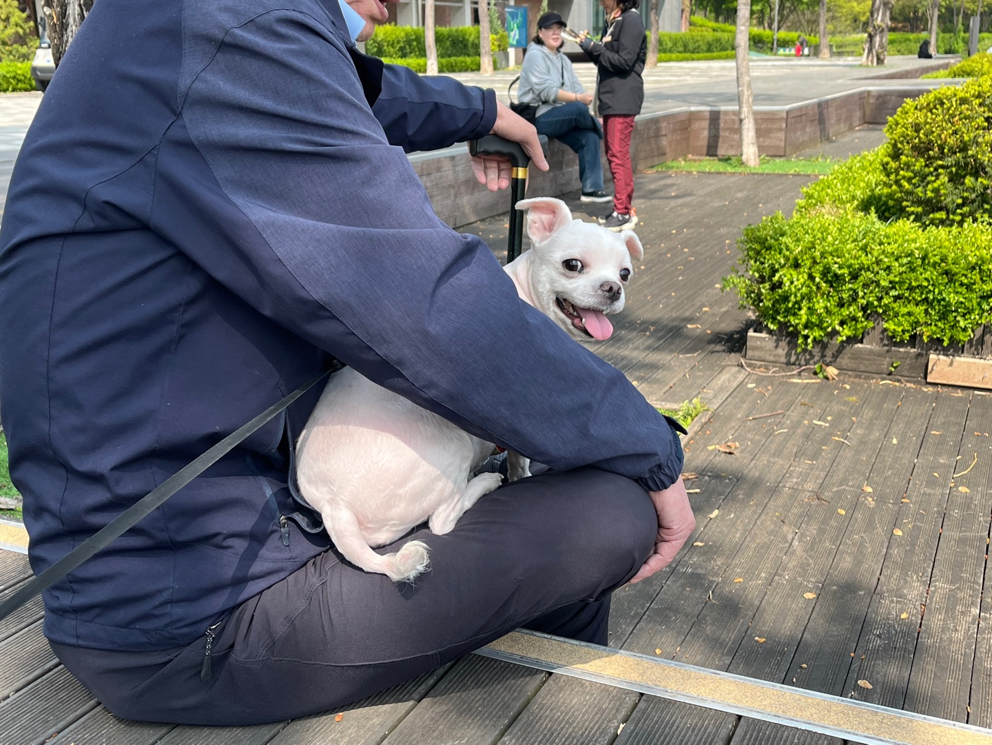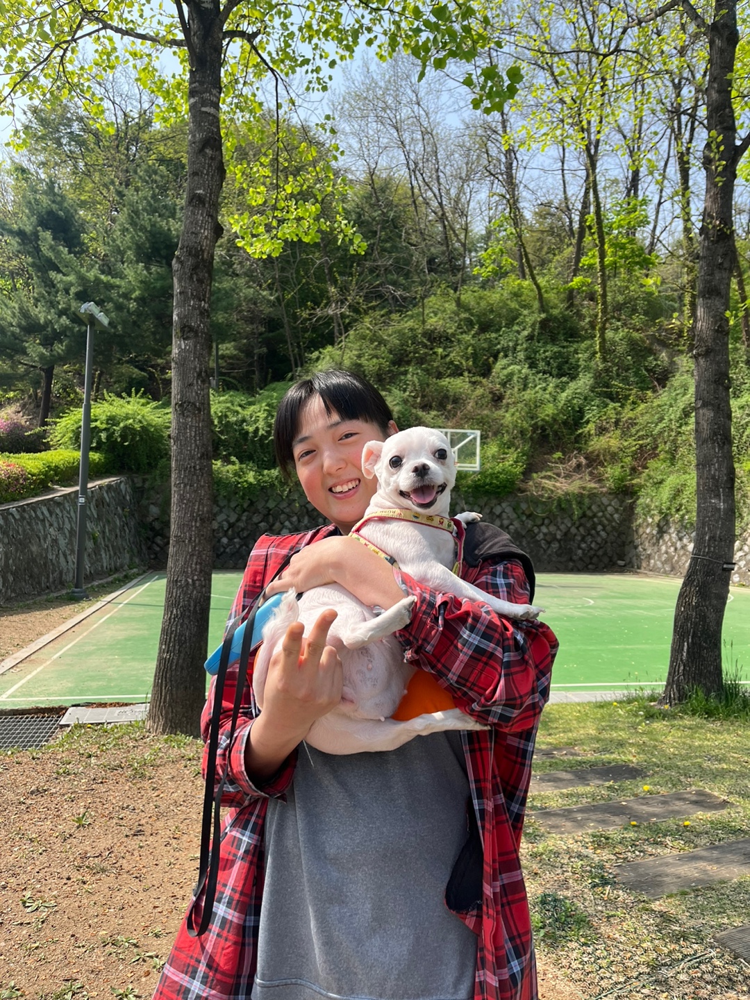 '얘는 나밖에 몰라. 사람 엄청 좋아해. 오랜만에 공원 나오니까 나도 좋고 강아지도 좋은가보다.😄'