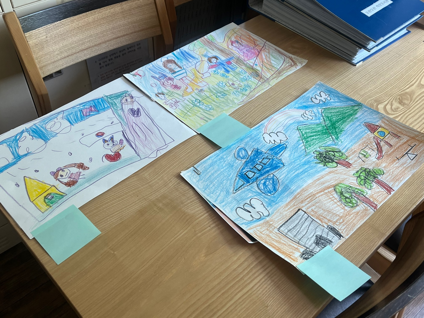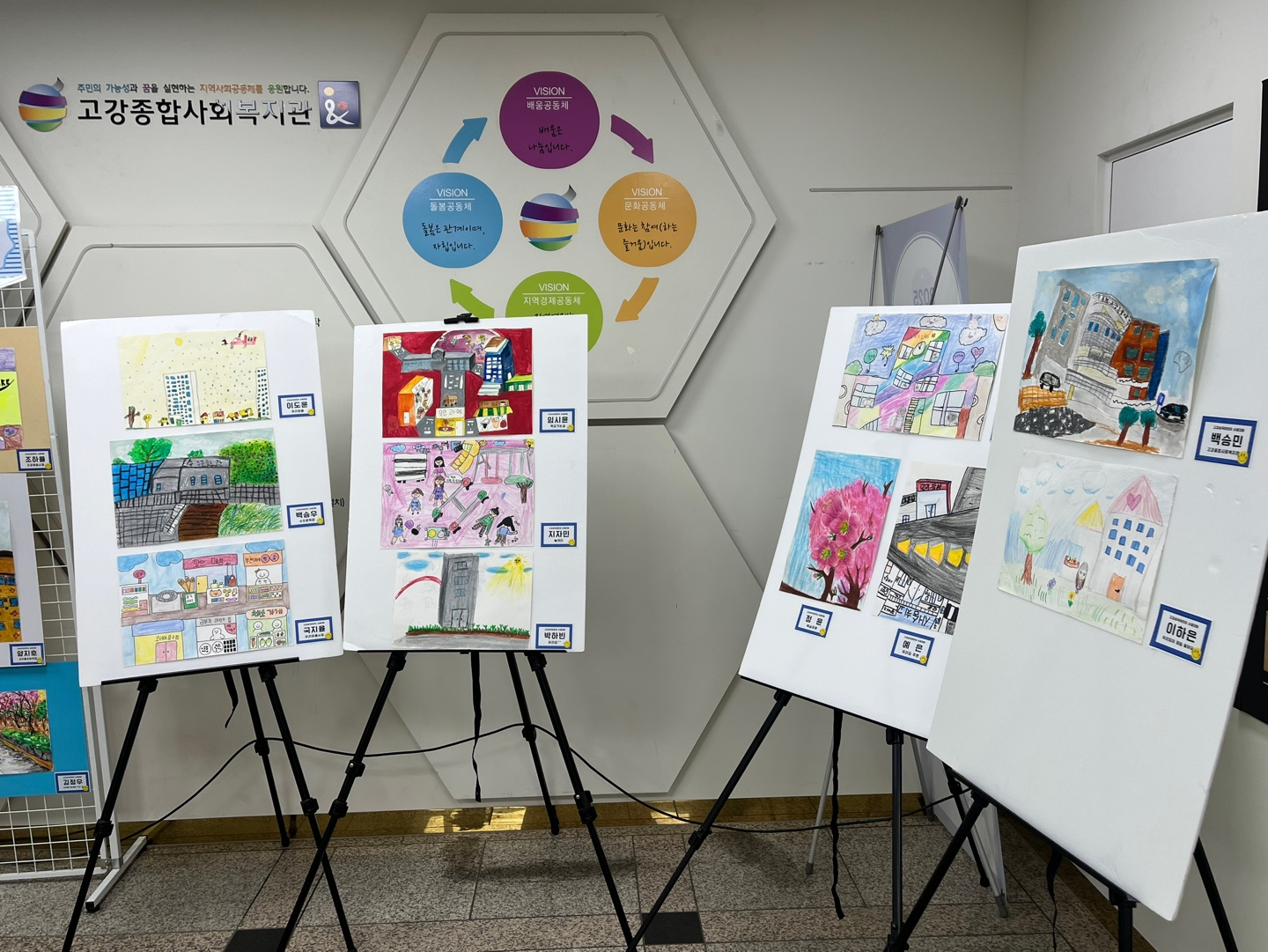 어린이들이 사랑하는 장소로는 고강종합사회복지관, 동굴시장, 마을의 아름다운 나무, 하늘을 나는 비행기 등이 등장했으며, 각자의 방식으로 마을을 표현한 그림들 덕분에 직원들의 얼굴에는 자연스러운 미소가 번졌습니다.