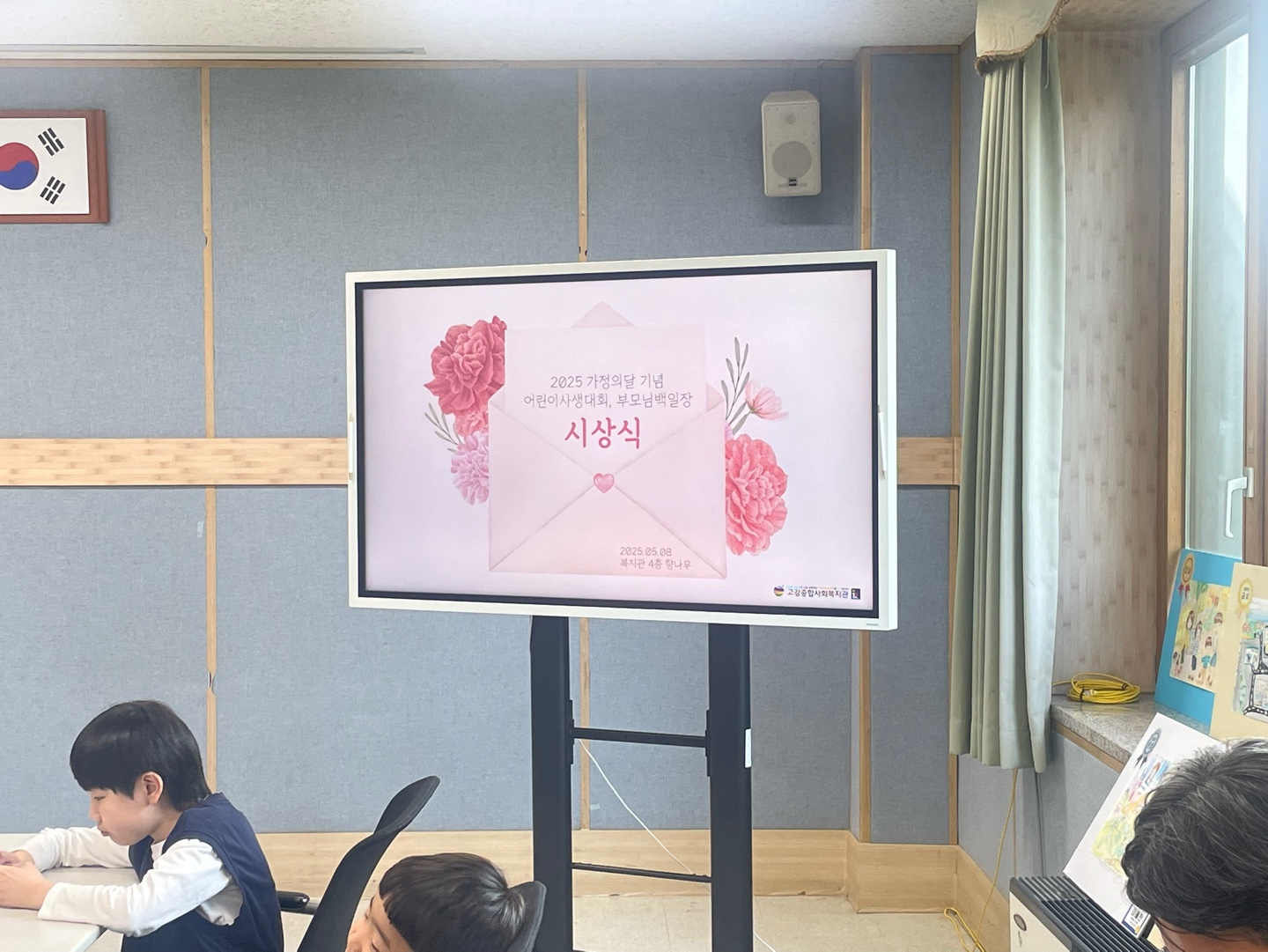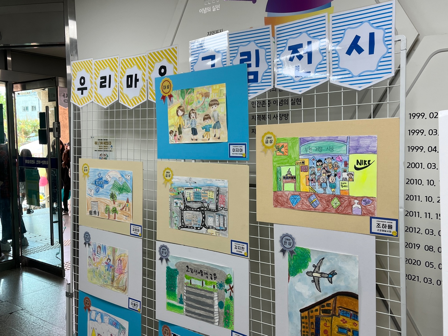 5월 2일 어린이날 행사 당일, 복지관 내 전시를 진행했고, 참여한 모든 친구들의 그림도 빠짐없이 전시하여 지역주민들과 그 기쁨을 나누었습니다.