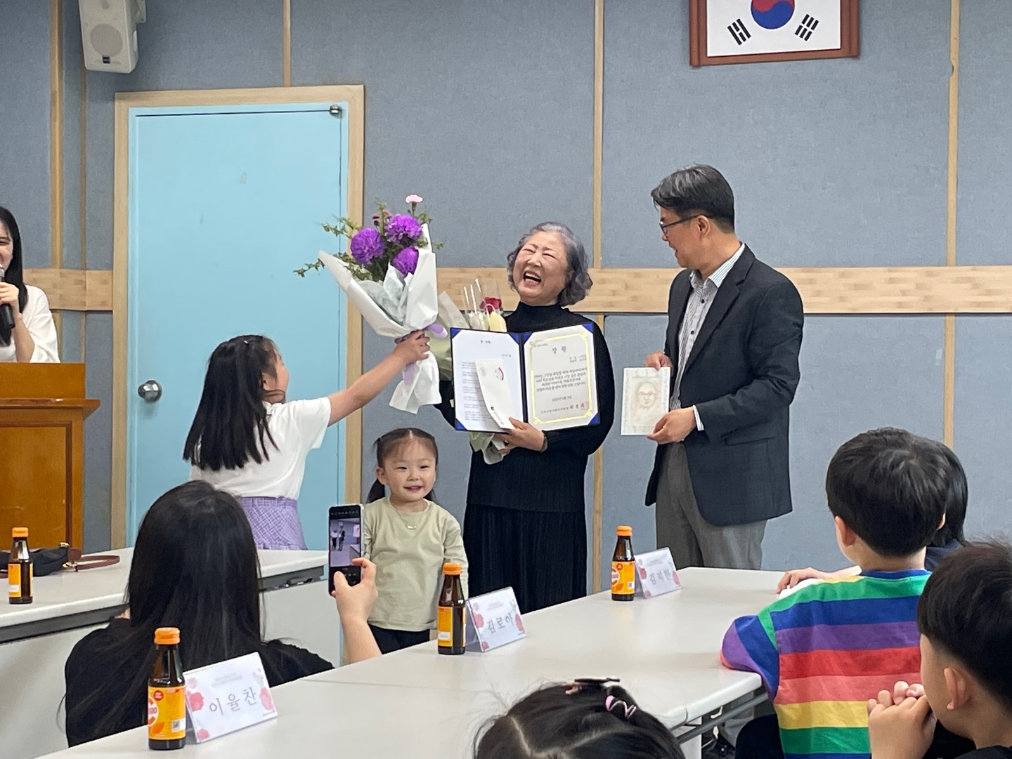 시상식에는 사생대회에서 입상한 어린이 6명과 백일장 수상자 2분이 참석해주셨습니다.