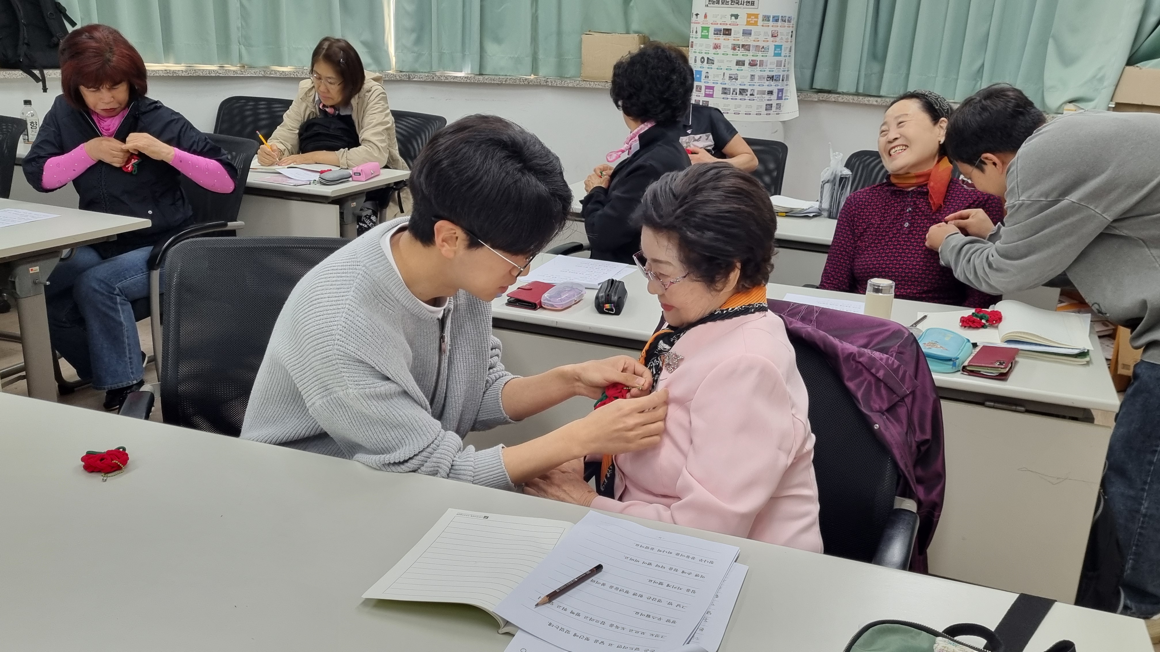 쑥스러운 웃을을 띄는 학습자 분들이 오늘은 가슴의 꽃보다도 사랑스럽고 아름다웠습니다.