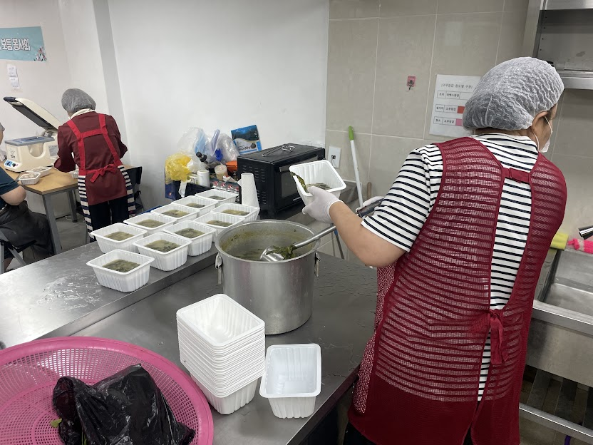 첫 번째 활동에 참여했던 봉사자들은 이제 주방이 익숙한 듯, 도착하자마자 별다른 말 없이 자연스럽게 집기를 꺼내고 자리를 정리하며 준비에 들어갔습니다. 처음엔 어색했던 손놀림이 이제는 척척 맞아가는 모습이 인상적이었습니다.