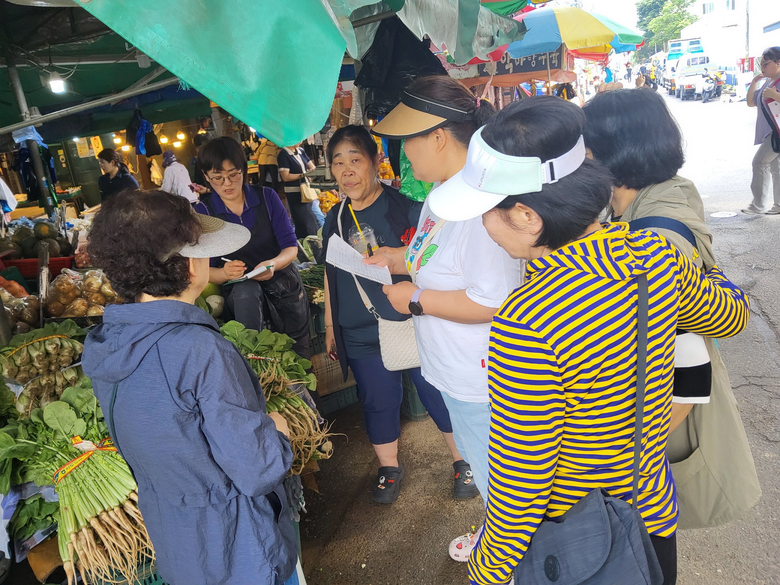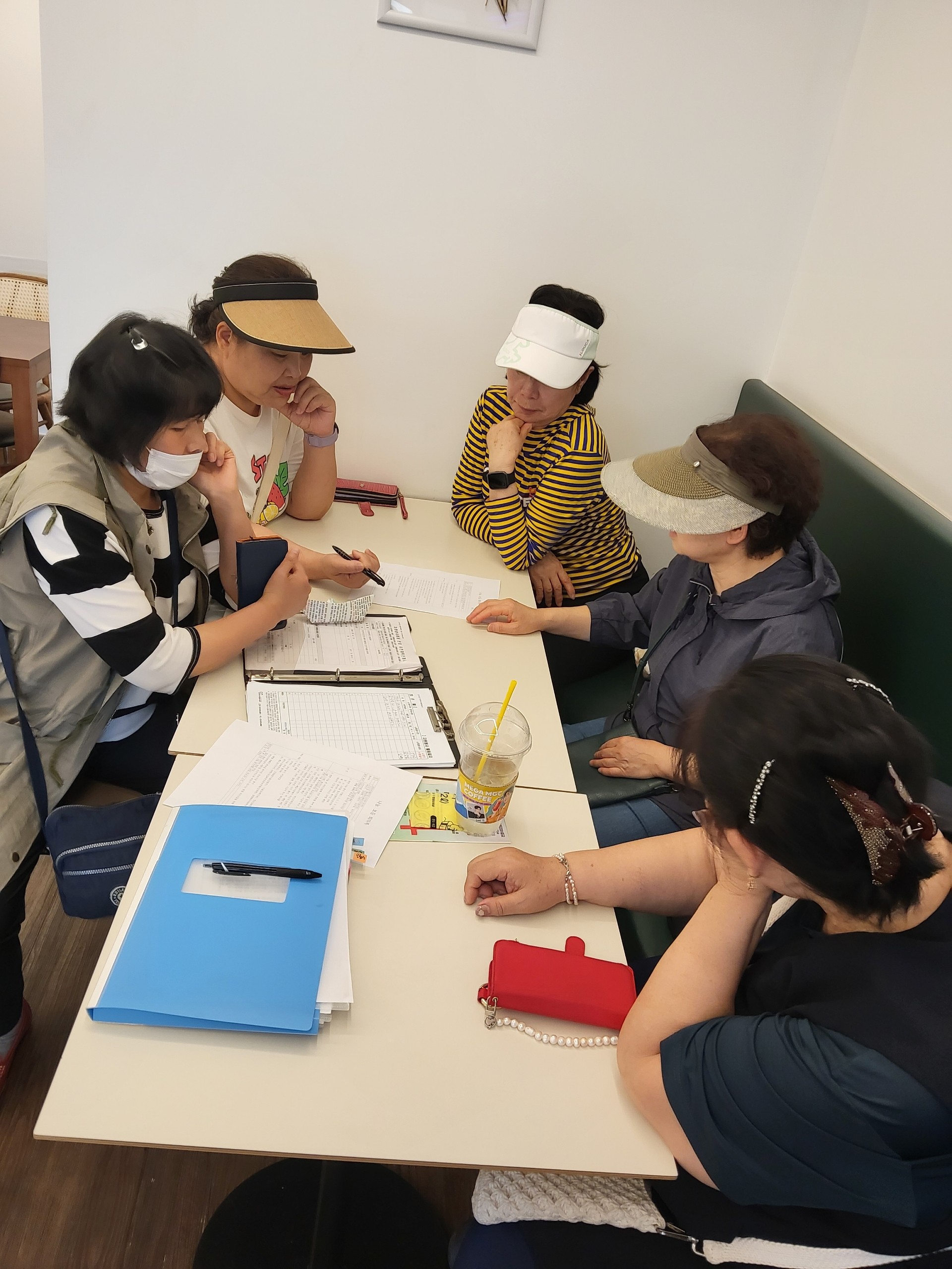 이번 반찬 나눔을 위해 회원 여섯 분이 전날 미리 모였습니다. 함께 시장을 돌며 신선한 고기와 채소를 고르고, 부족한 재료를 점검하며 예산 안에서 꼼꼼하게 장을 봤습니다. 장을 마친 뒤에는 근처 카페에 들러 다음 날 진행 흐름을 정리하며 회의를 가졌습니다.