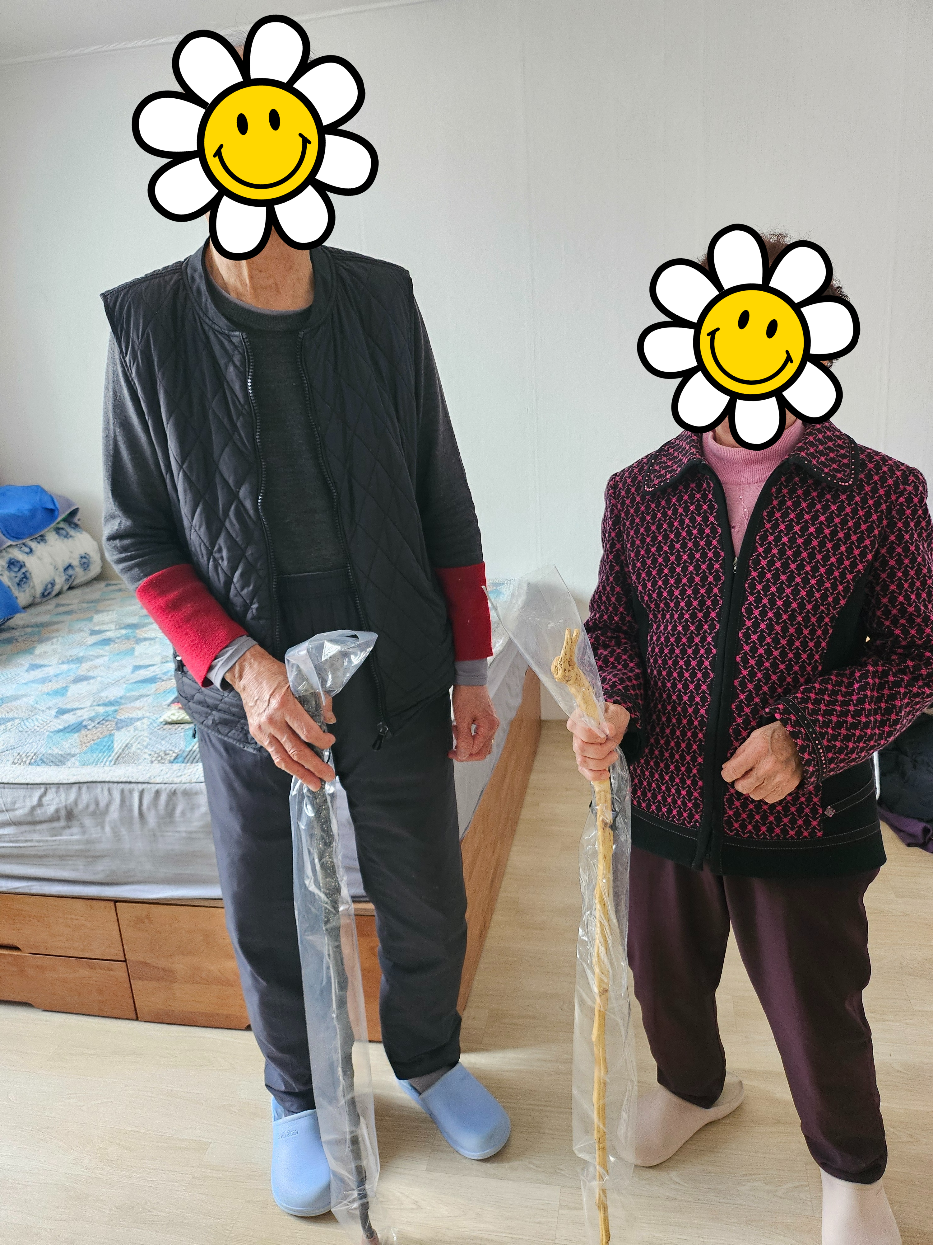 최동옥 어르신의 수제 지팡이가 생활지원사님들을 통해 지팡이가 없었던 분, 지팡이가 낡아서 새로 장만하려고 하셨던 분 등 지팡이가 필요하신 어르신들에게 전달되었습니다. 지팡이를 받아 본 어르신들의 반응은 하나같이 감사와 놀라움의 반응을 보여주셨습니다.