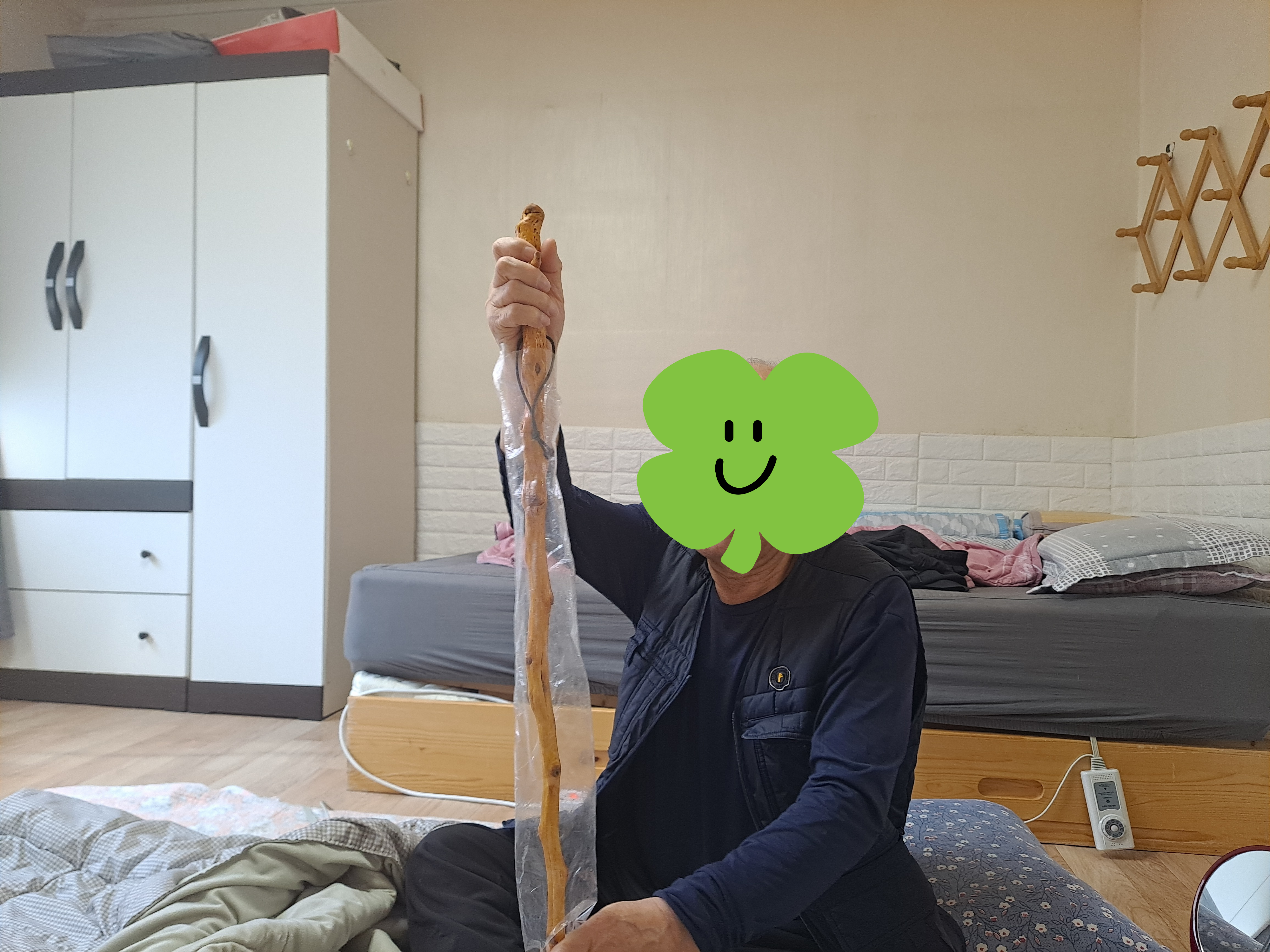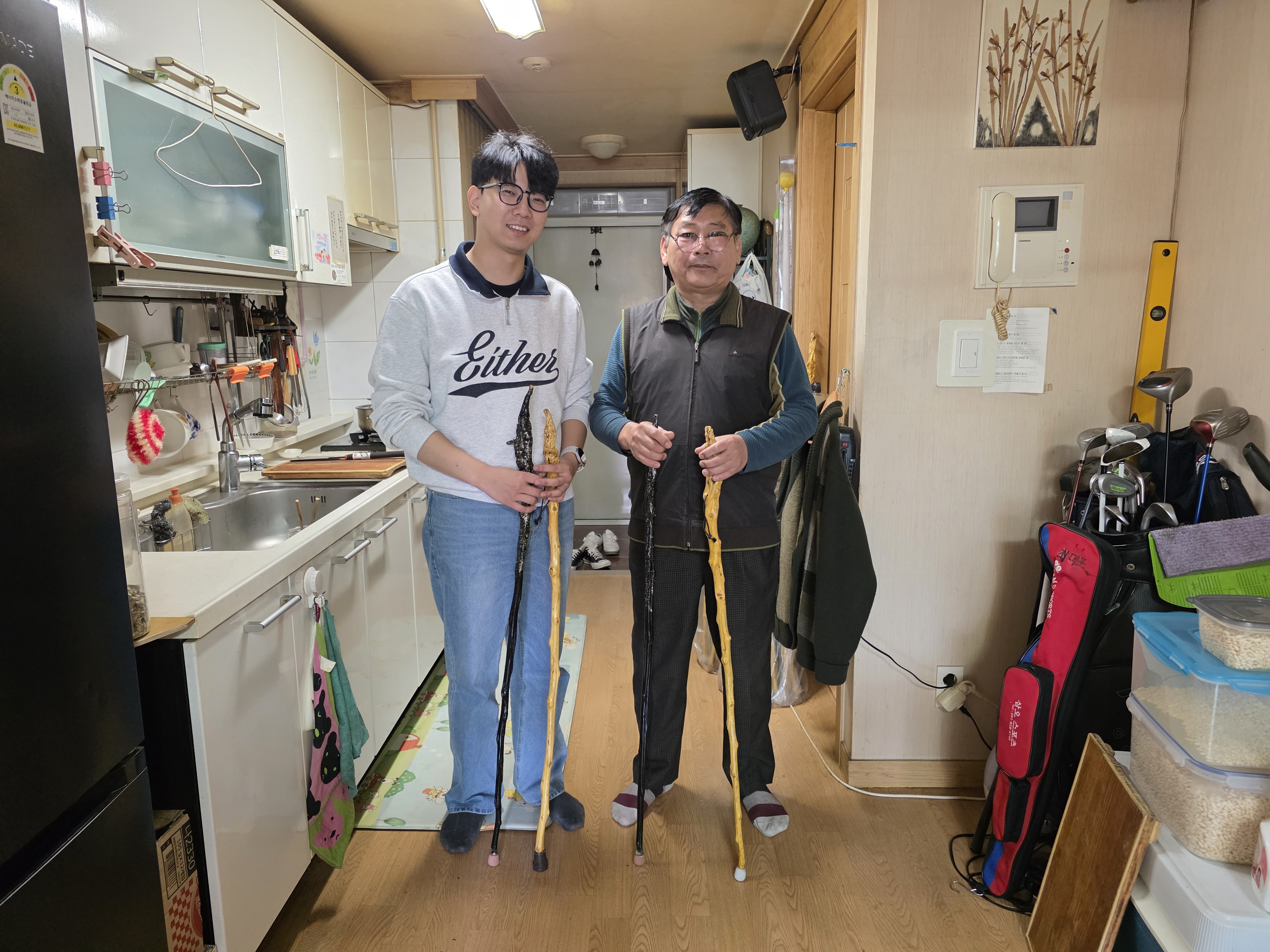 “허리랑 무릎이 아파서 건강관리를 위해 자주 산책을 다니는 데 이런 지팡이가 있으면 너무 좋죠. 안 그래도 지팡이가 없어서 길가에 있는 나뭇가지를 지팡이 삼아 사용했는데 멋진 지팡이가 생기니까 너무 좋네요. 만드신 분의 정성이 들어간 만큼 저도 소중히 사용해야겠어요.”