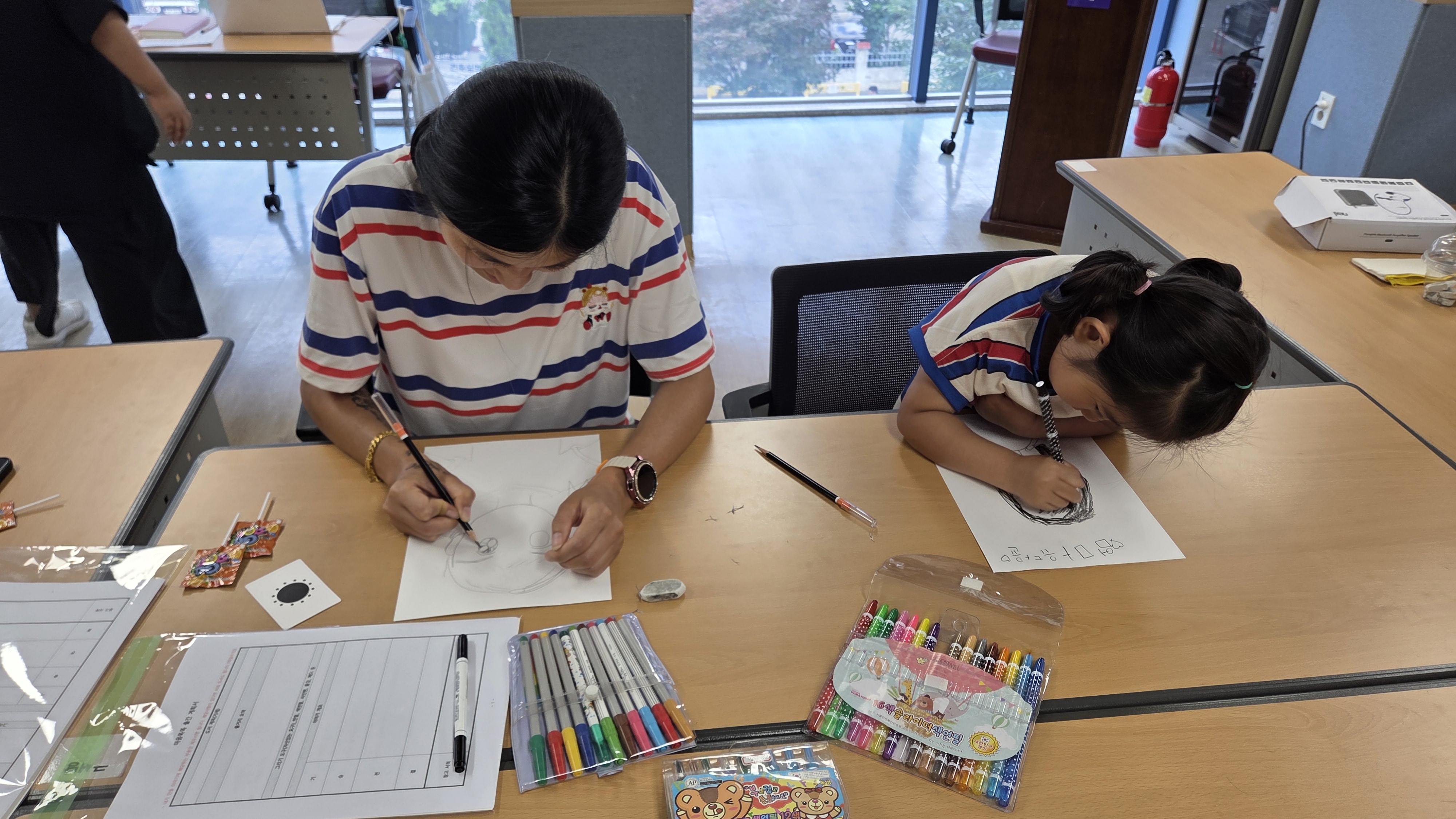 아이들은 엄마를, 엄마는 아이를 그리며 서로를 바라보는 따뜻한 시선을 그림으로 표현했습니다. 그림 실력은 중요하지 않습니다. 진심이 담긴 표현이 곧 멋진 예술이 되니까요.