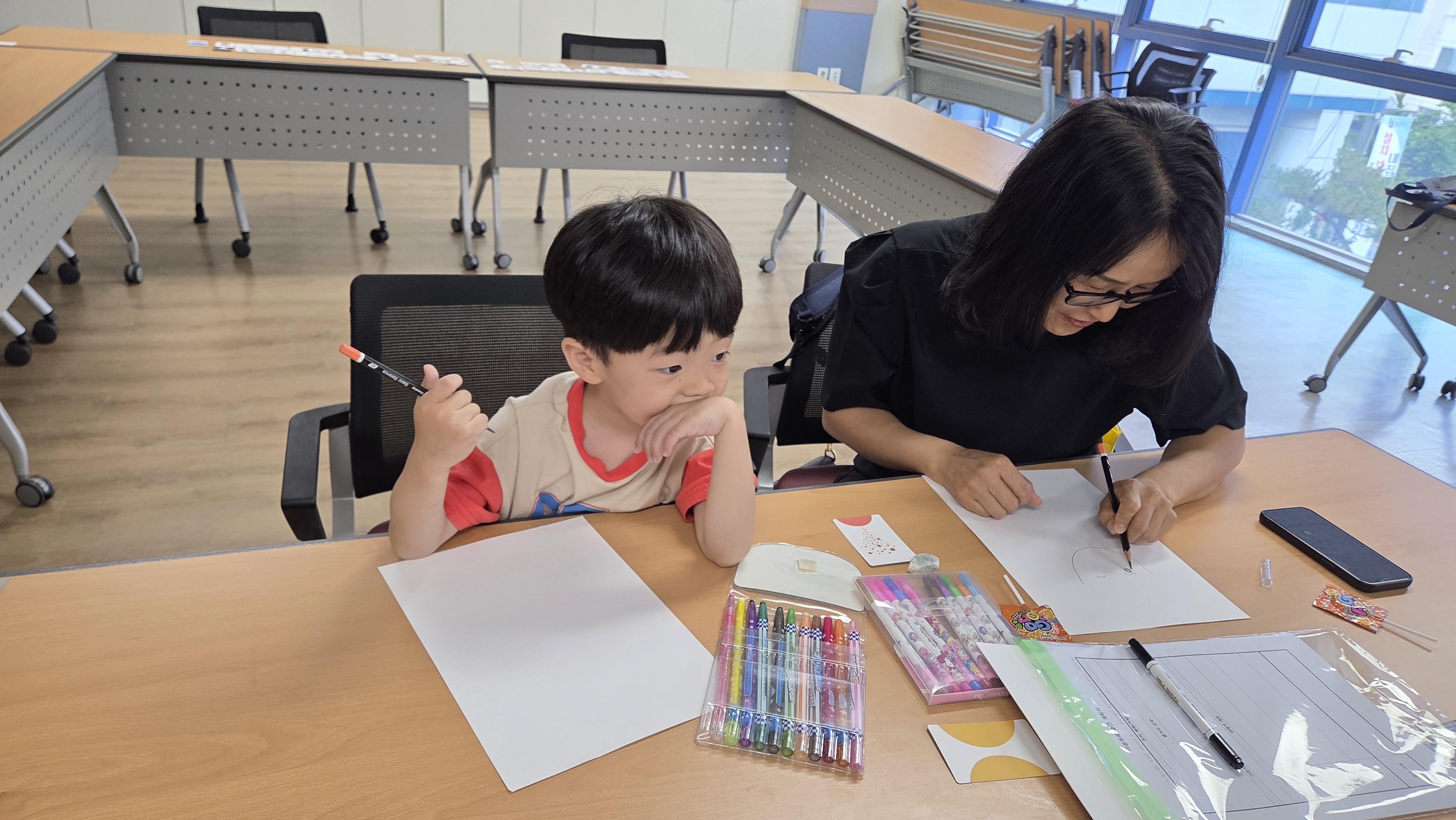 아이들은 엄마를, 엄마는 아이를 그리며 서로를 바라보는 따뜻한 시선을 그림으로 표현했습니다. 그림 실력은 중요하지 않습니다. 진심이 담긴 표현이 곧 멋진 예술이 되니까요.
