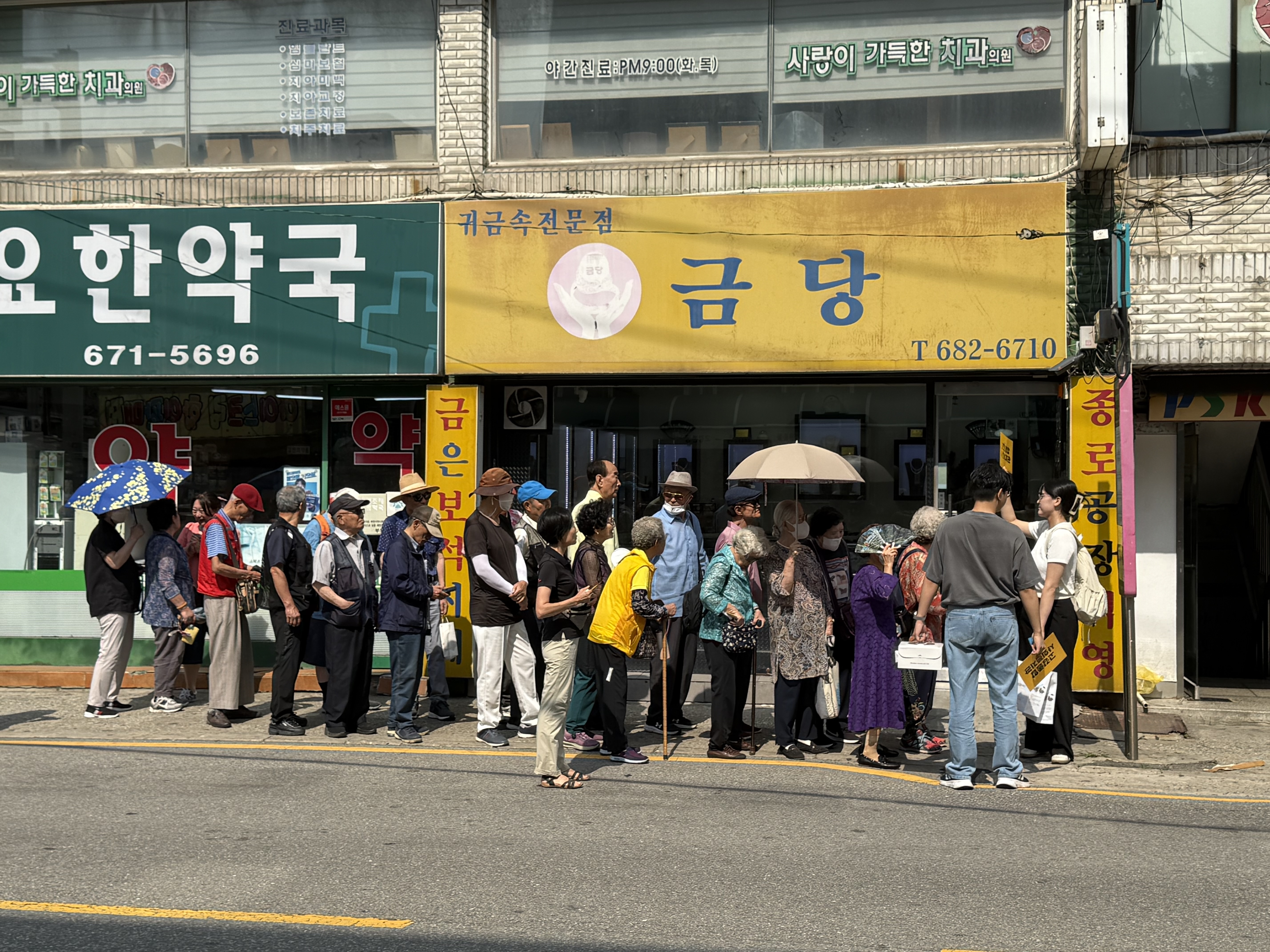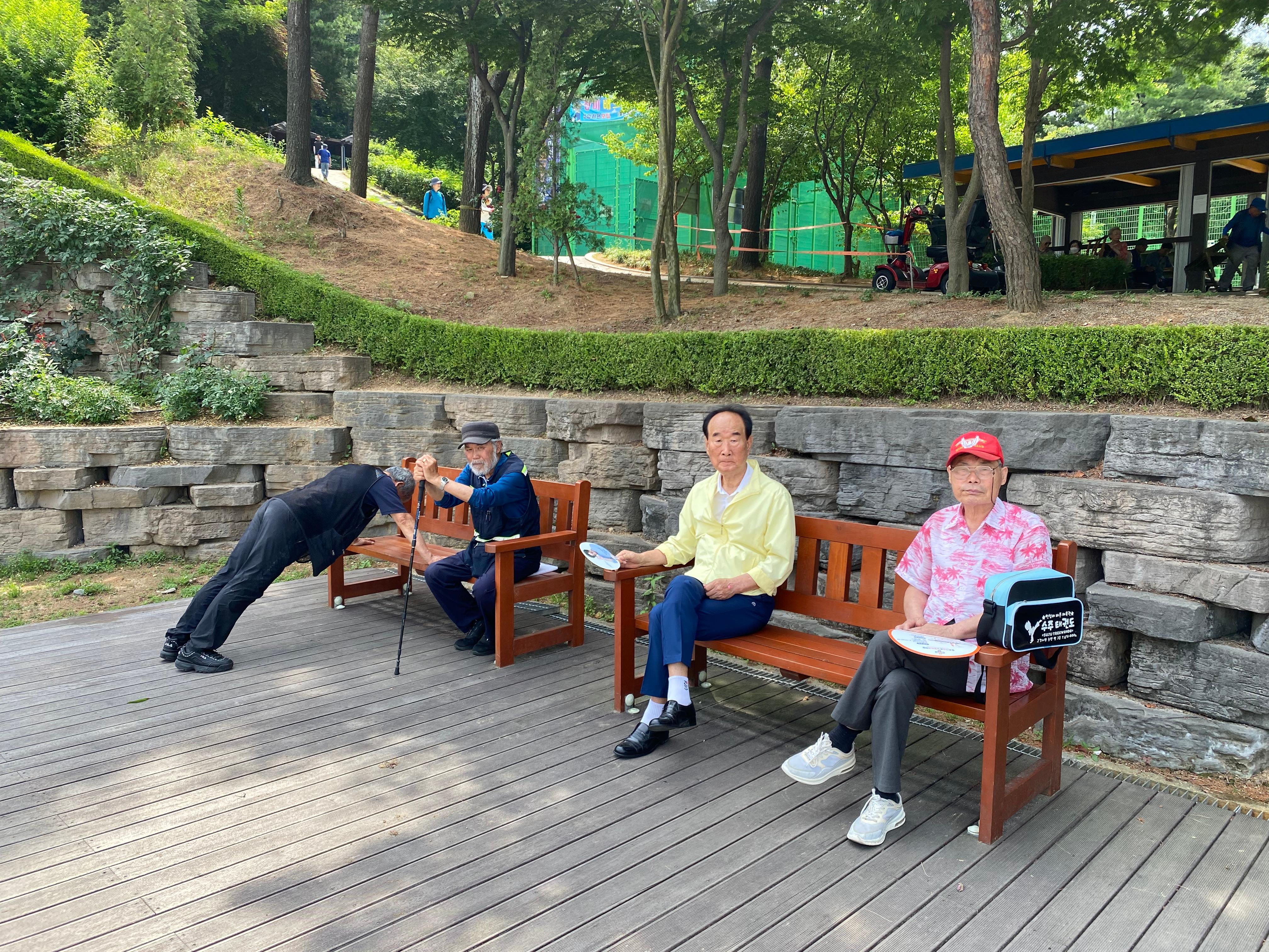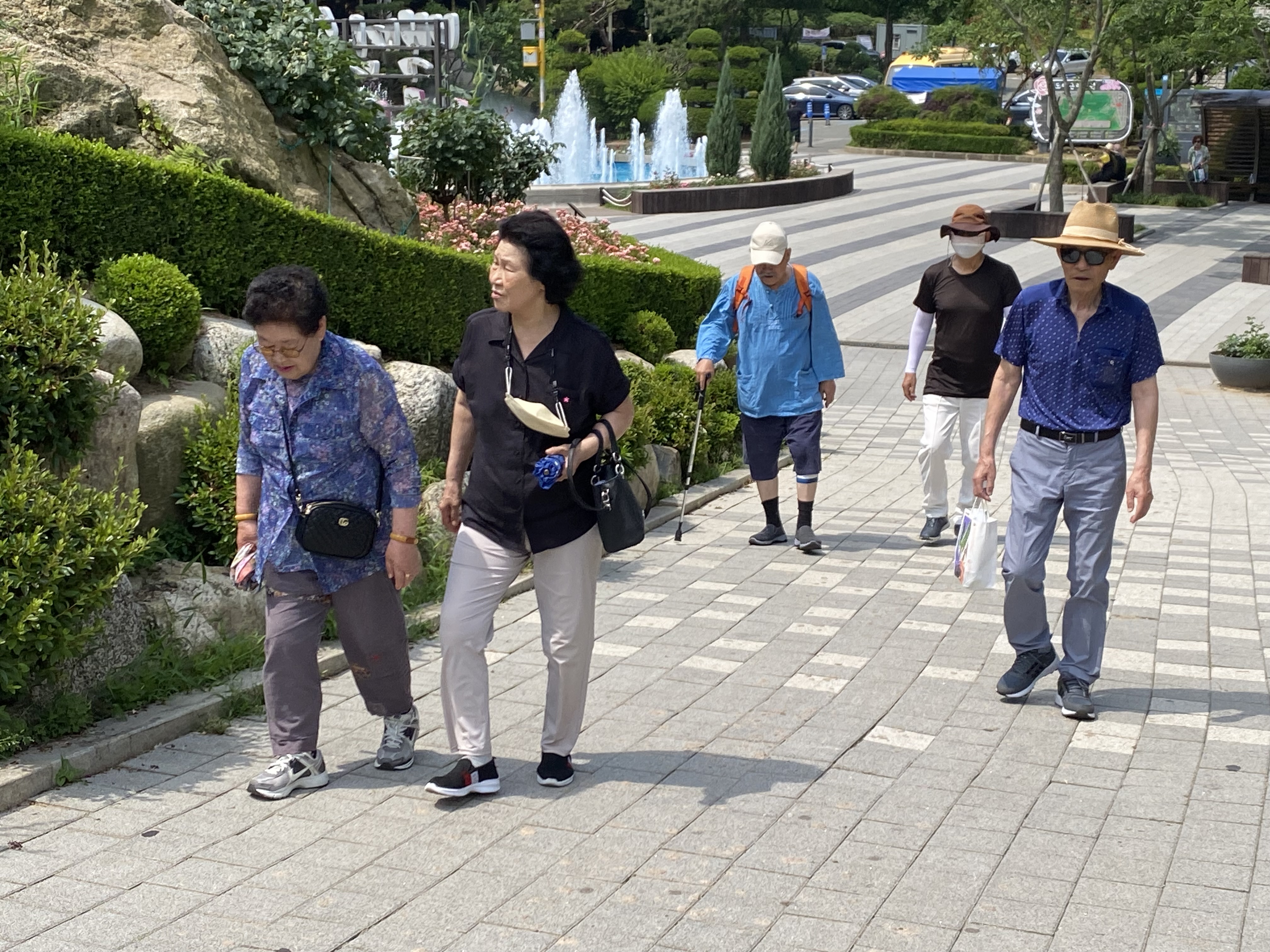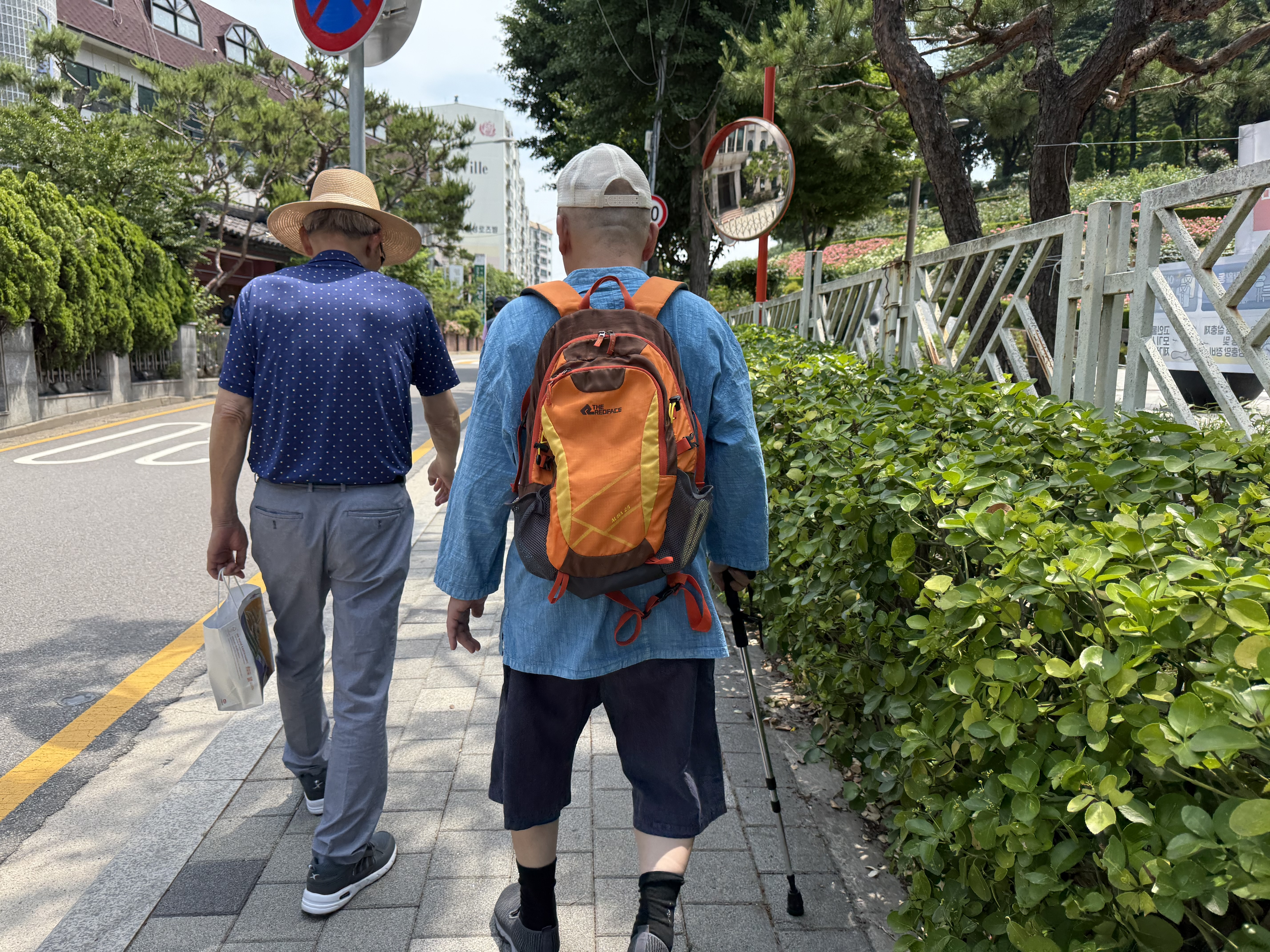 걸어가는 와중에 어르신들은 옆에 서있는 서로의 손을 붙잡고