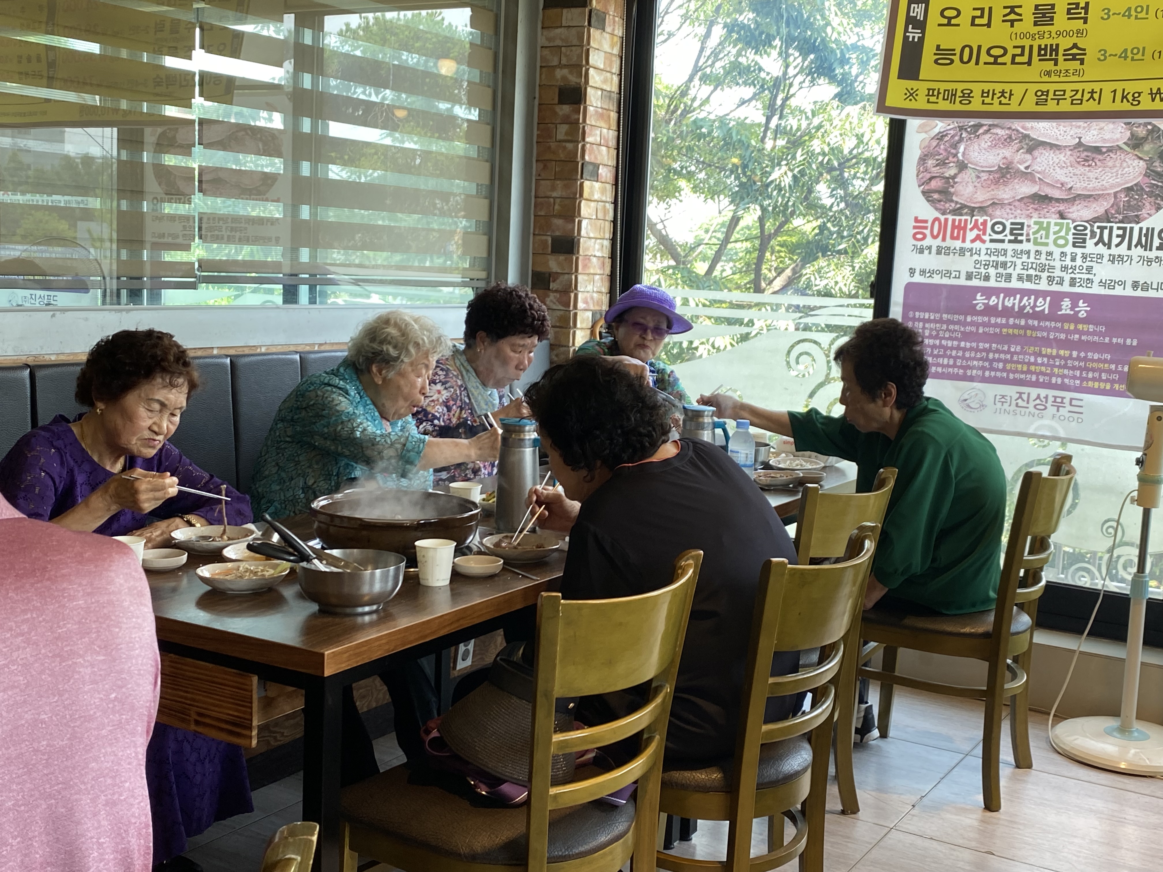 그리고 어르신들은 자리에 앉아 식사를 시작하셨습니다.
