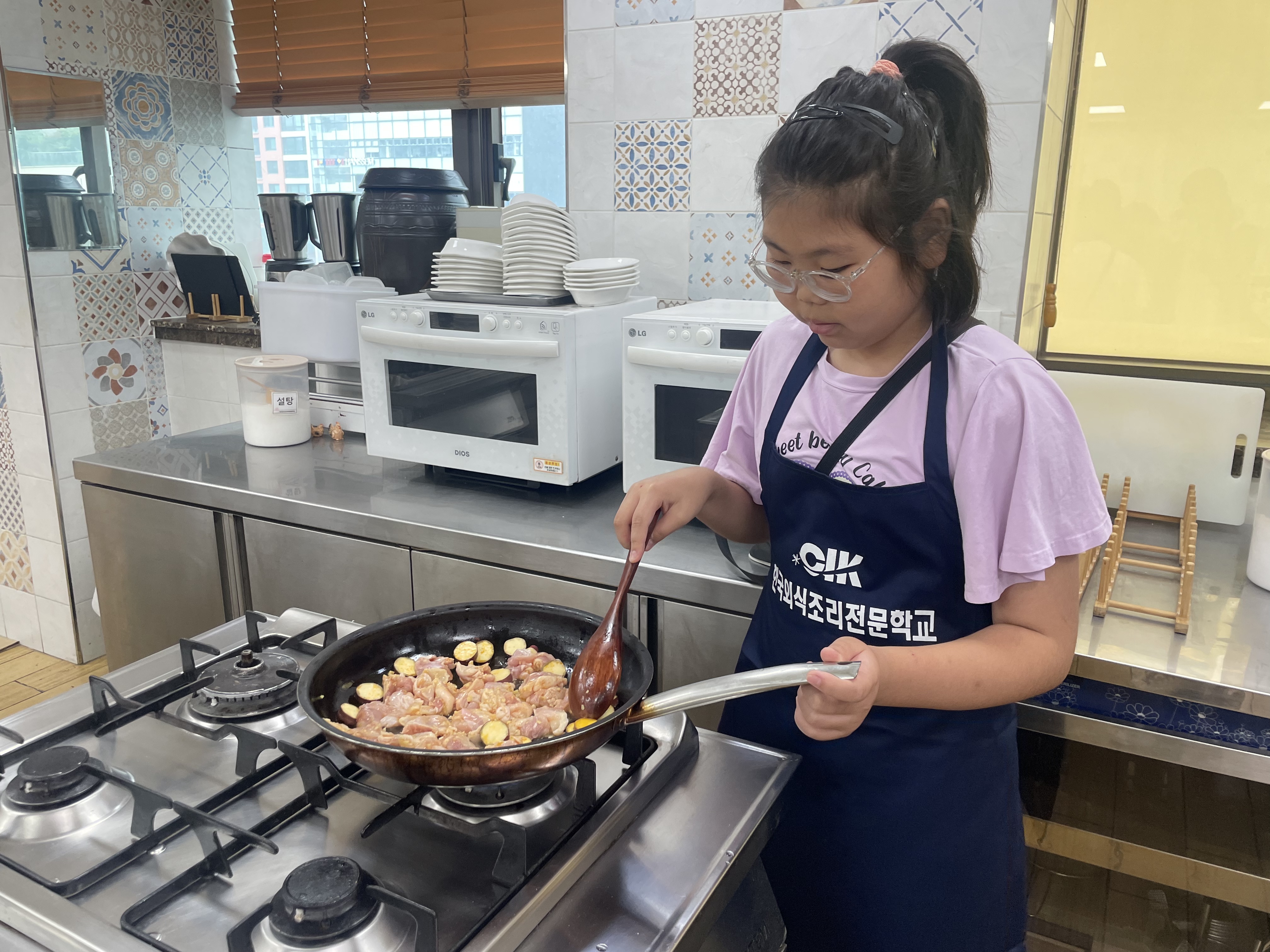가정에서도 요리를 하며 익숙한 모습의 아이들도 보입니다.