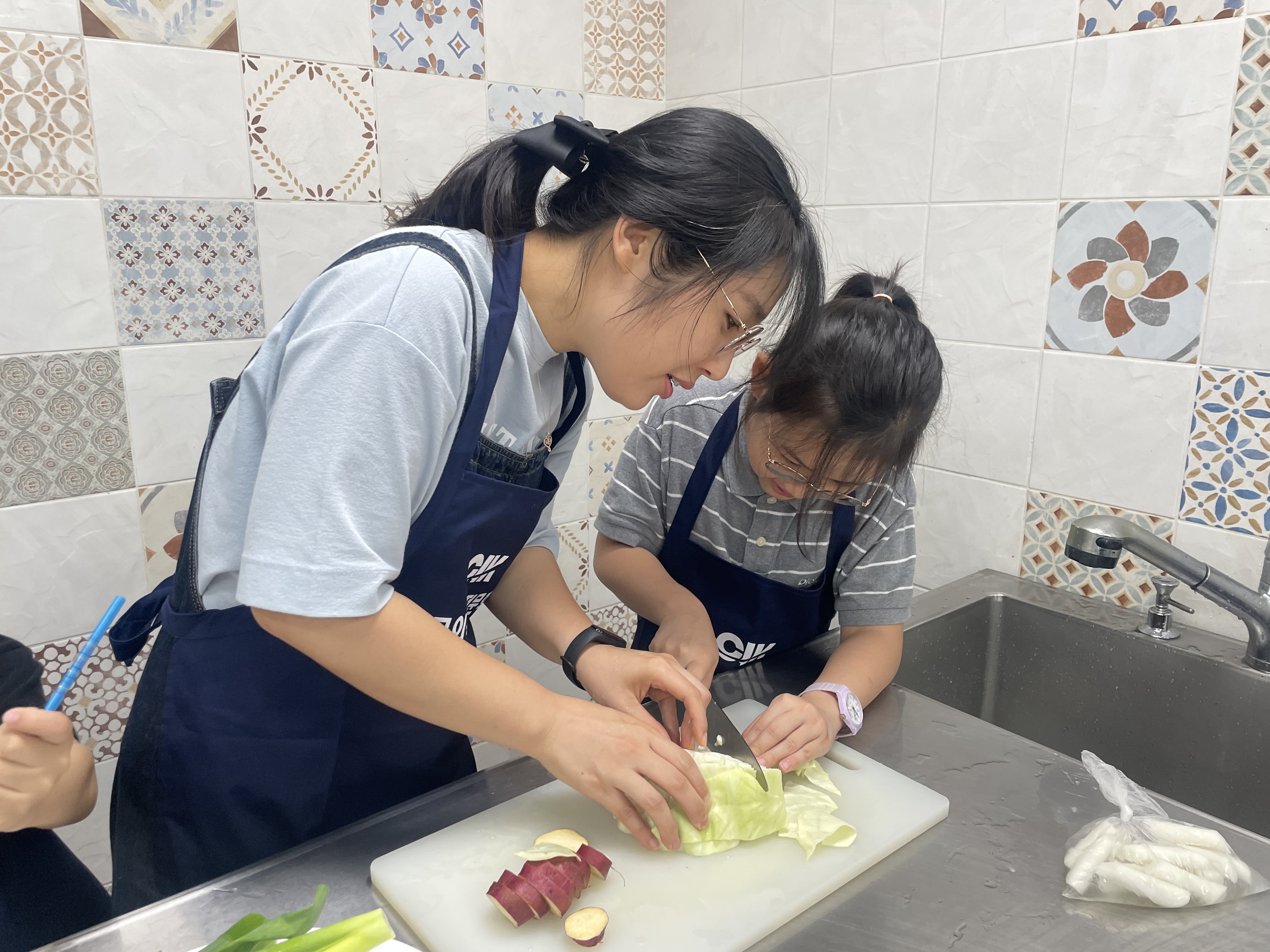아이들과 함께 직접 계량도 진행하고, 야채 썰기도 진행해봅니다.