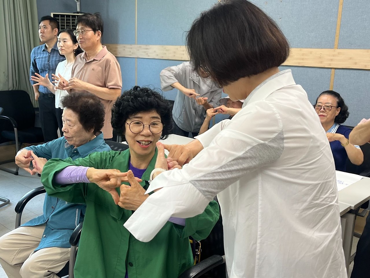 치매예방과 인지훈련에 도움이 되는 동작들을 재미있는 추임새, 노래, 강사님의 유쾌한 말솜씨로 함께하니 너무나 즐겁습니다.