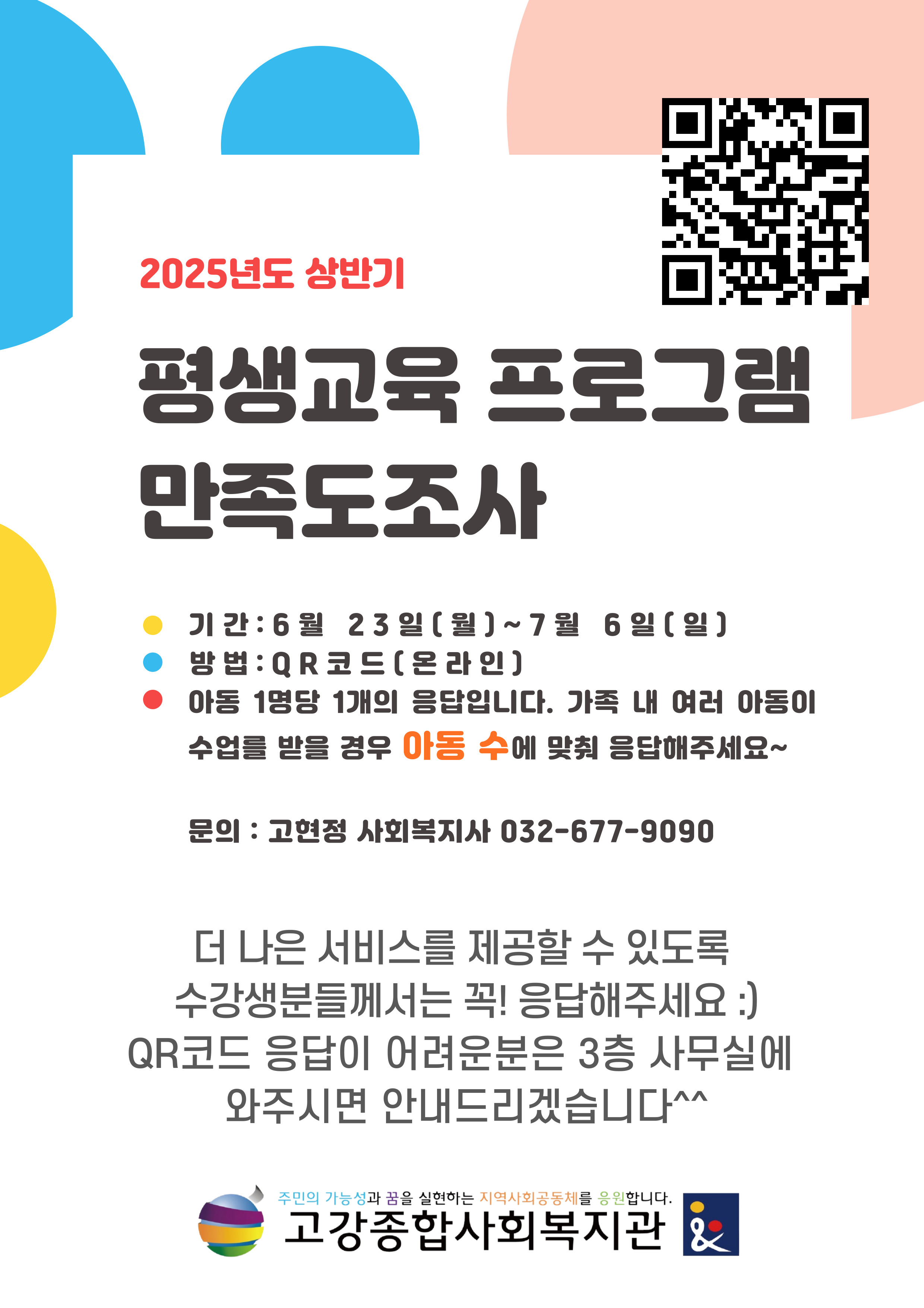 고강종합사회복지관에서 운영하는 평생교육, 아동발달센터를 이용해주셔서 감사합니다.