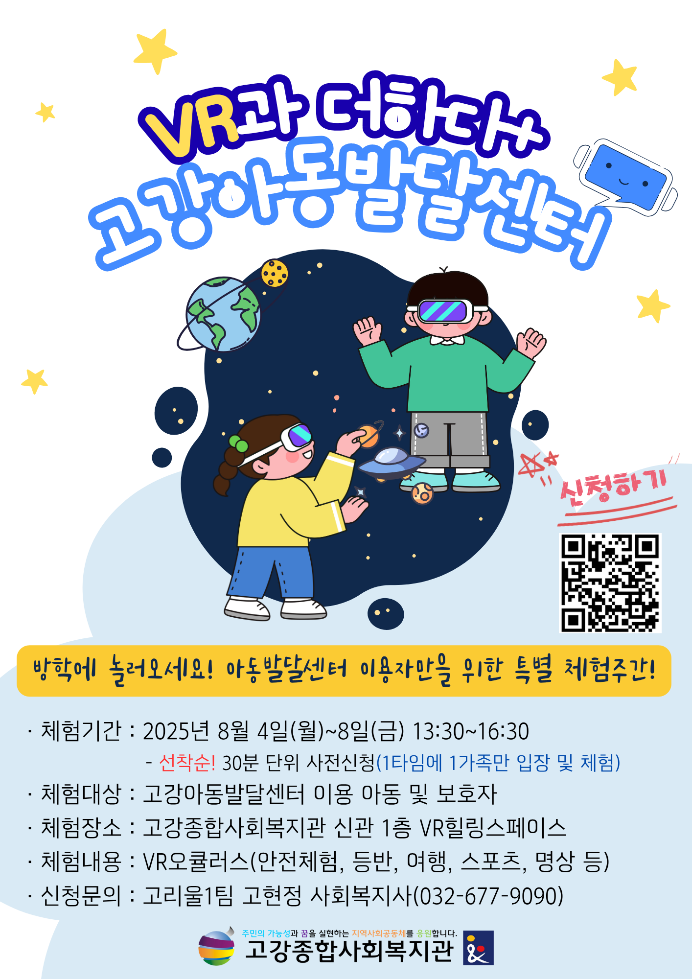 다양한 VR체험이 준비되어 있으니 원하는 시간에 우리 아이만을 위한 시간으로 누려보세요! 많은 참여 부탁드립니다😄
