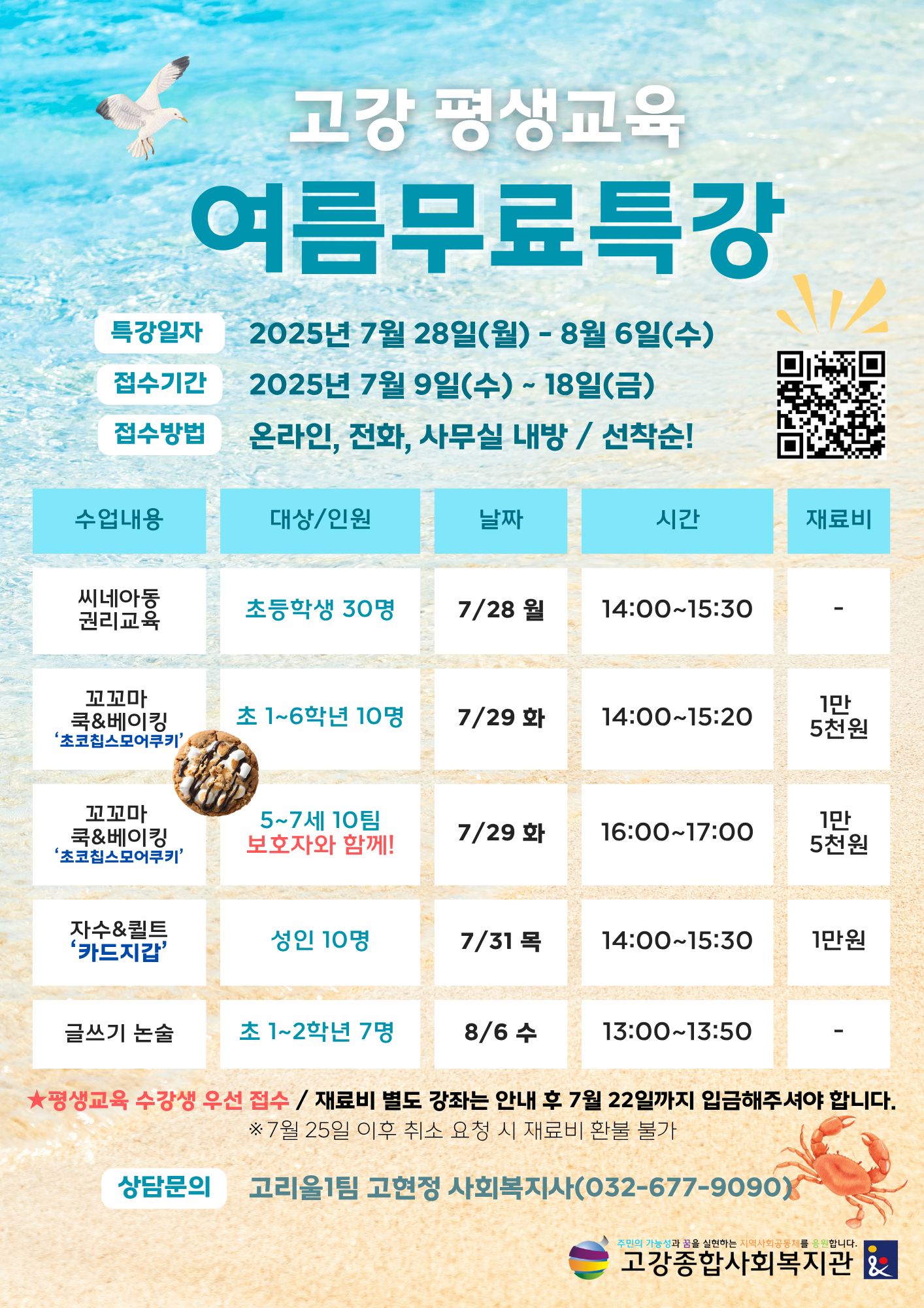2025년 평생교육 여름방학을 맞아 준비한 특강입니다. 선착순 접수! (평생교육 수강생 우선 접수). 선정 안내 받으신 분은 재료비를 납부해주셔야 확정이 되며, 25일까지만 환불 및 취소가 가능합