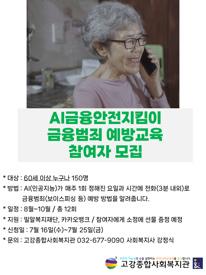 매주 동일한 요일과 시간에 AI가 전화로 금융범죄 예방 방법을 알려줍니다.