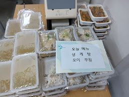 활동 당일 아침, 공유주방에는 이른 시간부터 분주한 손길이 모였습니다. 삼계탕에 들어갈 닭과 찹쌀, 마늘, 대추, 인삼을 손질하고,오이는 신선하게 다듬어 아삭하게 무쳐냈습니다.