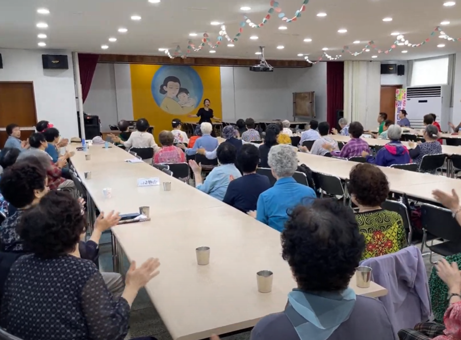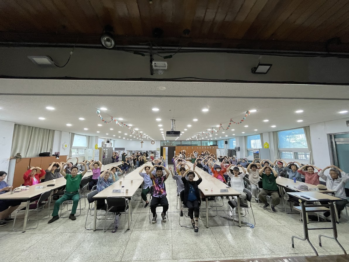 첫 순서는 건강체조였습니다. 그동안 배웠던 동작들을 최신 트로트 음악에 맞춰 다시 꺼내 보는 시간이었는데, 어르신들께서 박자도 잘 맞추시고, 표정도 밝았습니다. 한쪽에선 “우리 언제 이렇게 익숙해졌대~” 하는 말도 들렸습니다.