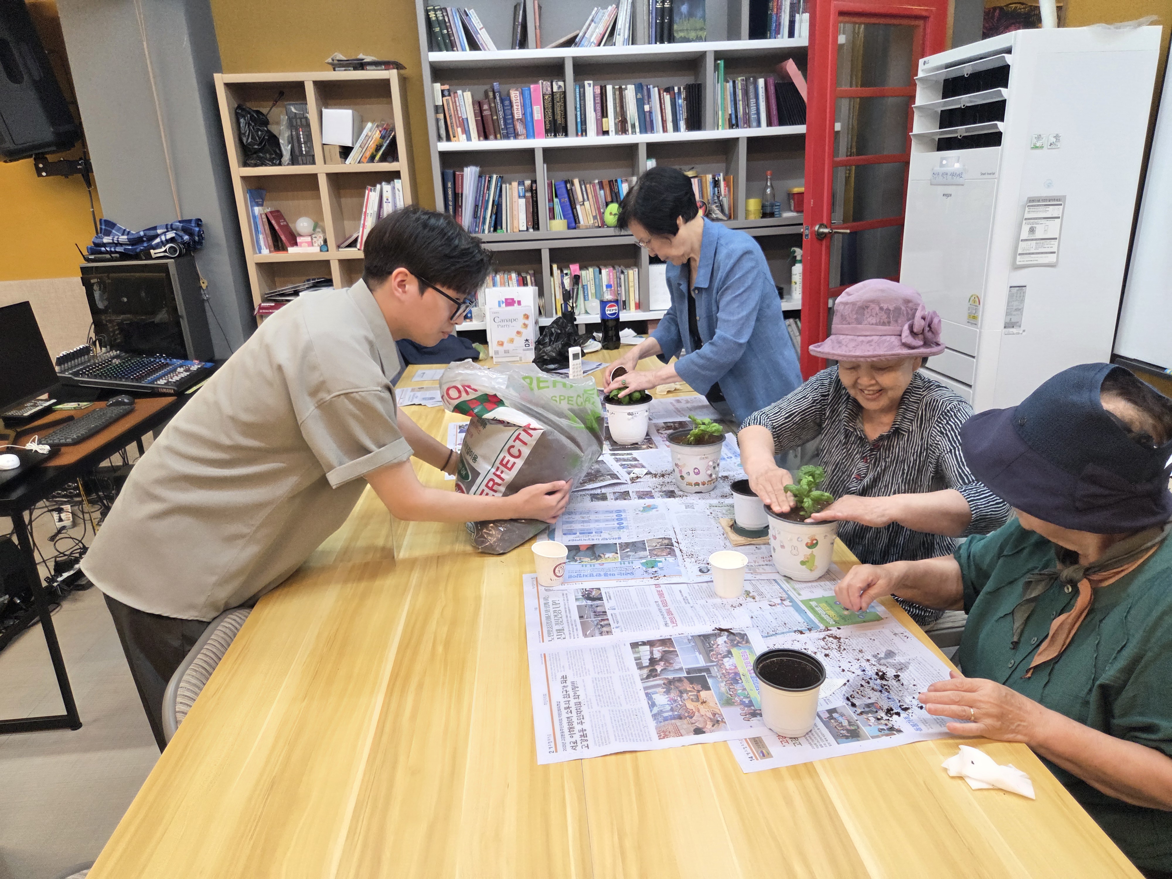 막상 시작해 보니 어르신들께서 저희보다 훨씬 더 능숙하게 분갈이를 해주셨습니다.