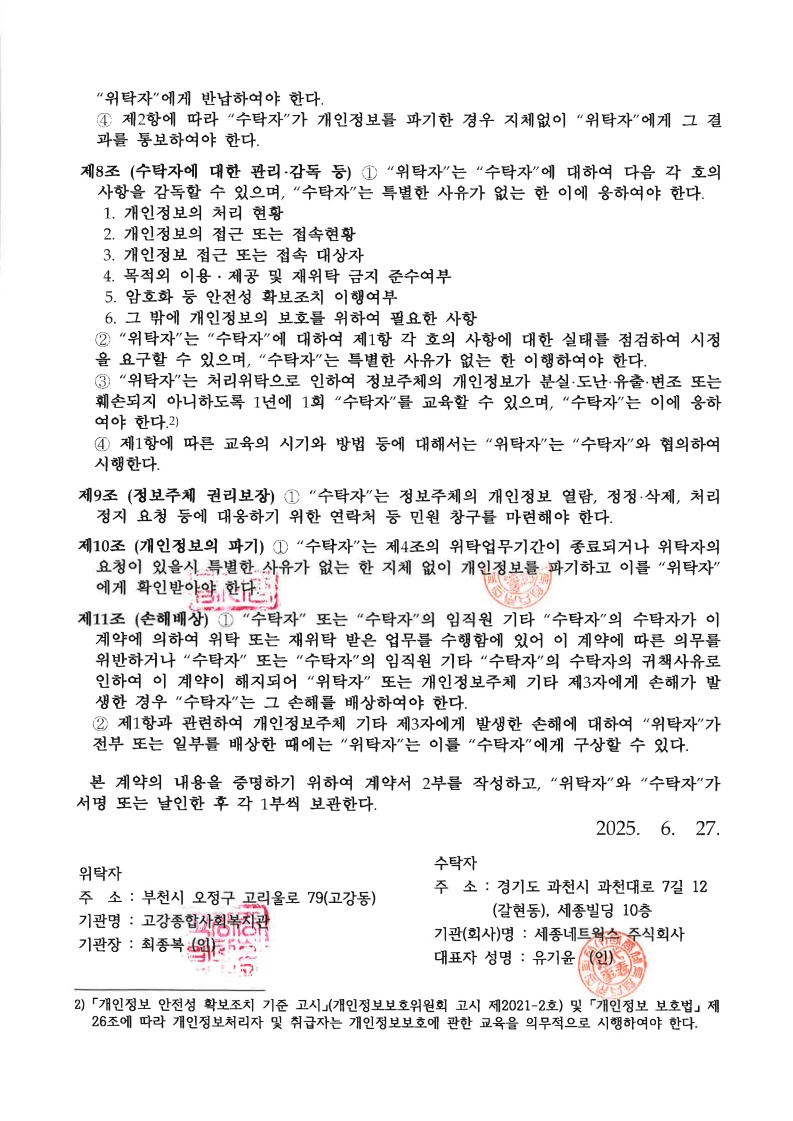 부천시 온마음 AI복지콜 시행에 따라 고강종합사회복지관도 동의한 분에 한해, 세종네트웍스 주식회사에 개인정보처리 업무 위탁을 진행하여 위 사항을 공지합니다.