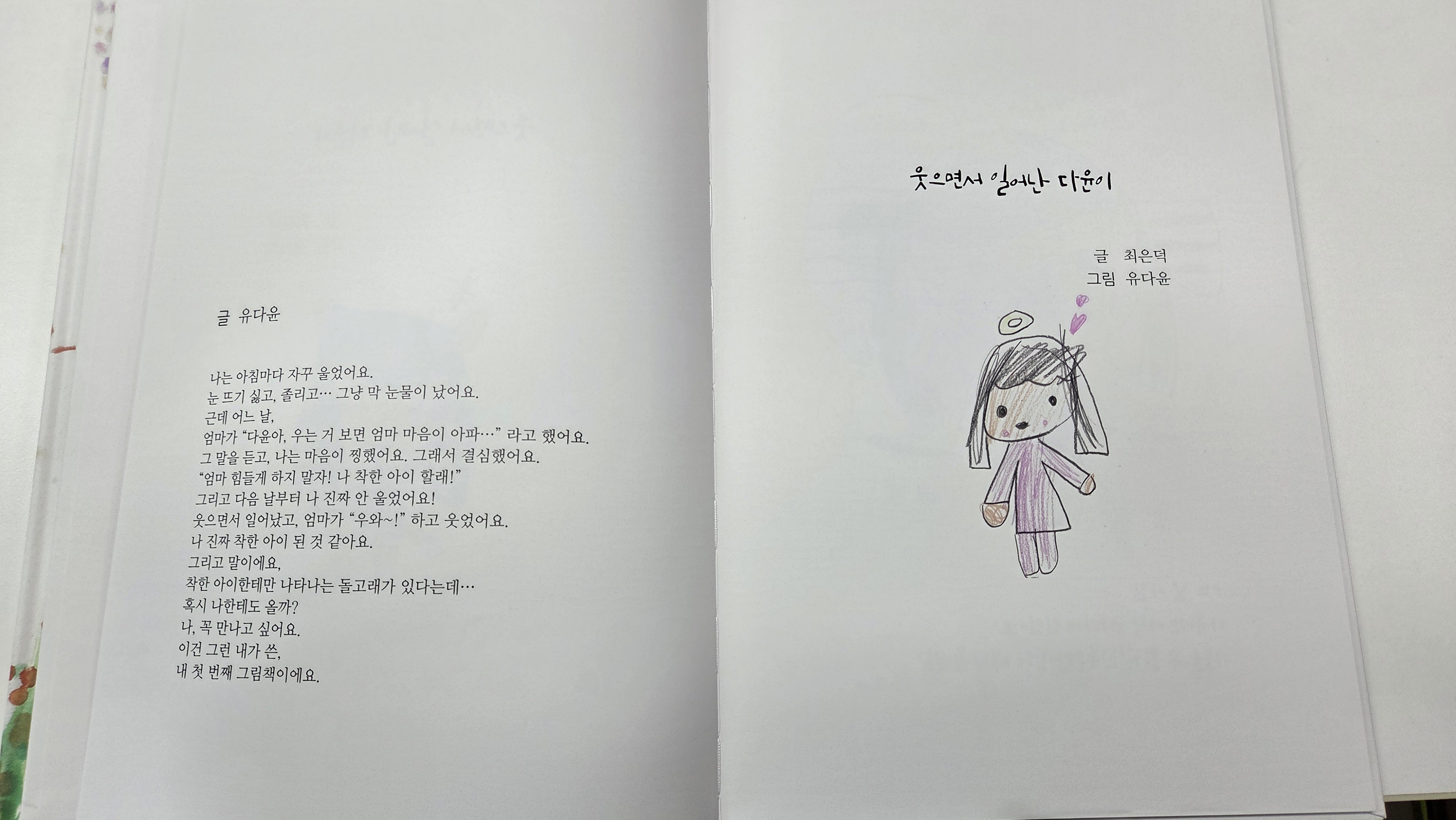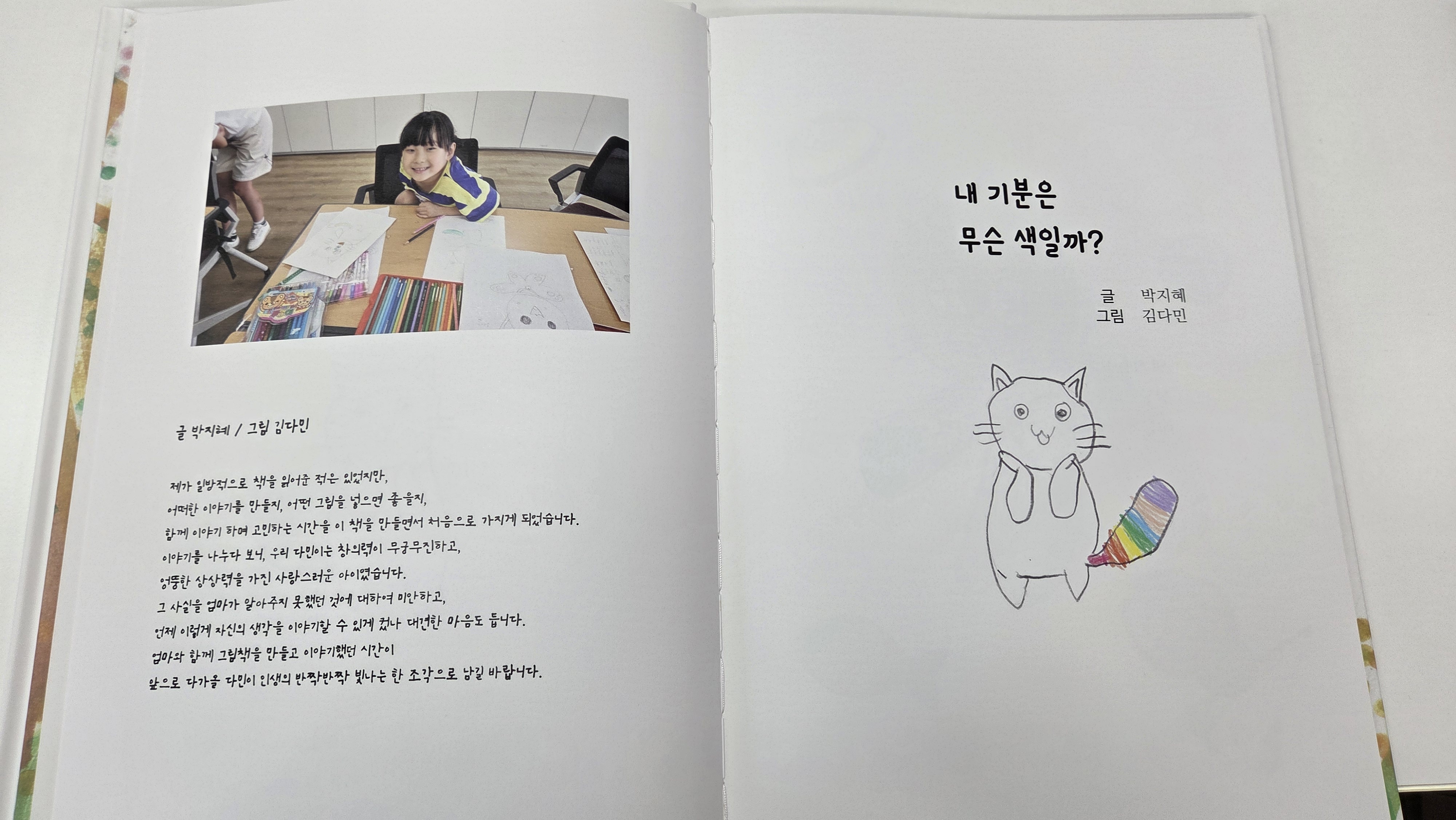 책 두 권이 탄생했습니다. 보드북인지, 일반 그림책인지보다는 그 과정이 더 중요했어요. 이야기를 만들기 위해 엄마와 아이가 맞대고 고민하고 웃고, 때로는 멈춰 서기도 했습니다. 그림 그리는 아이의 작은 손가락이 종이를 타고 지나간 자국, 엄마가 따뜻한 마음을 담아 고른 단어 하나하나가 머릿속에 또렷이 떠오릅니다.
