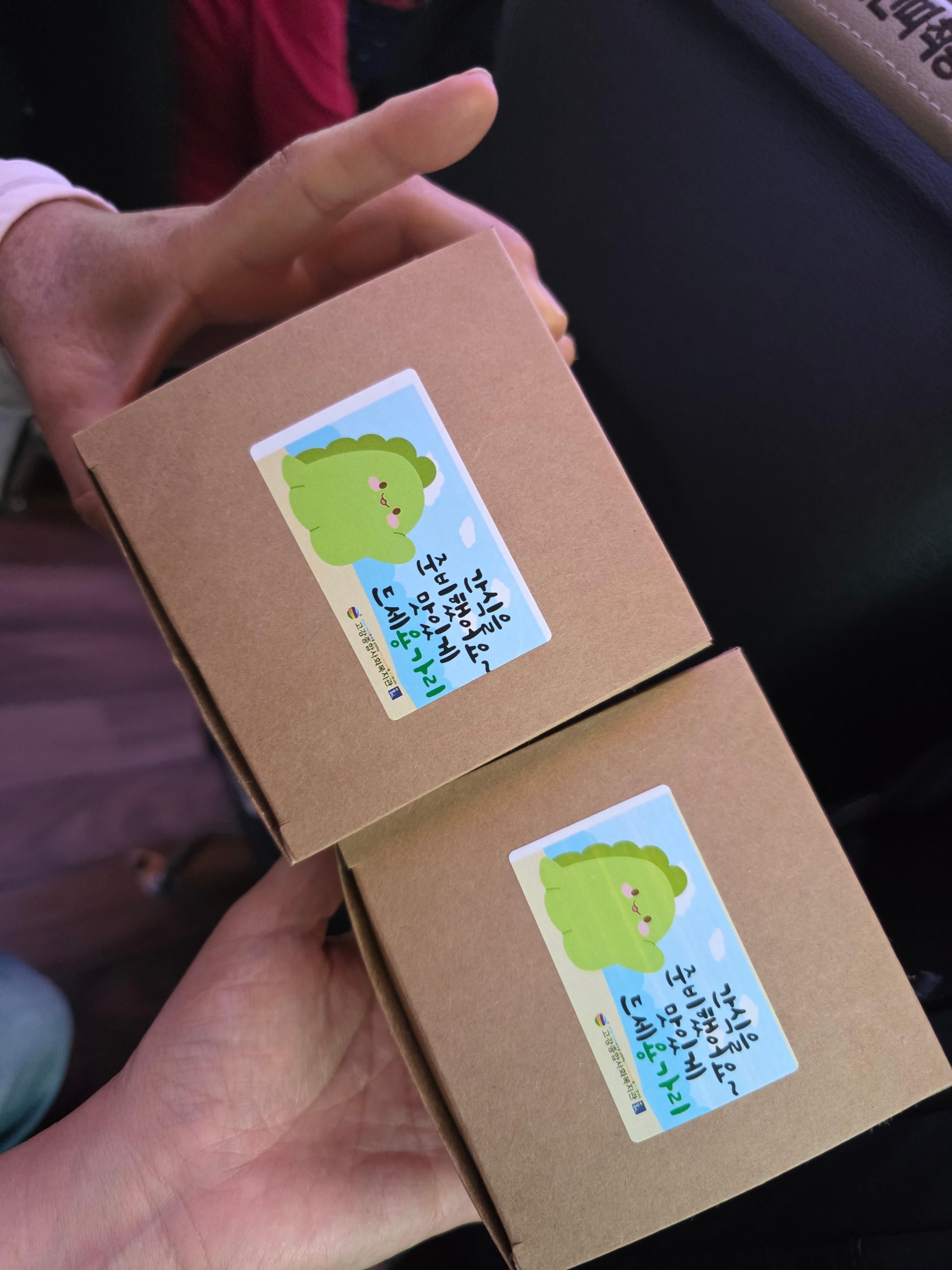 분주한 손길 속에서 버스 안은 어느새 웃음소리로 가득 찼고, 자연스럽게 자기소개 시간이 이어졌습니다. 처음엔 조금 어색했지만, 이내 분위기는 부드럽고 따뜻해졌습니다.