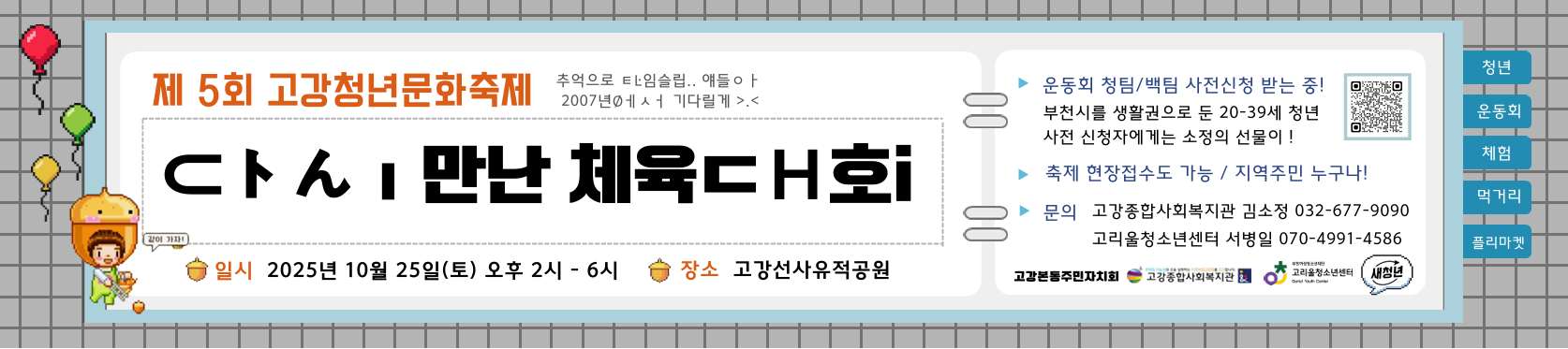 * 본 행사는 고강본동주민자치회의 지원을 받아 고강종합사회복지관, 고리울청소년센터 꾸마에서 진행합니다.