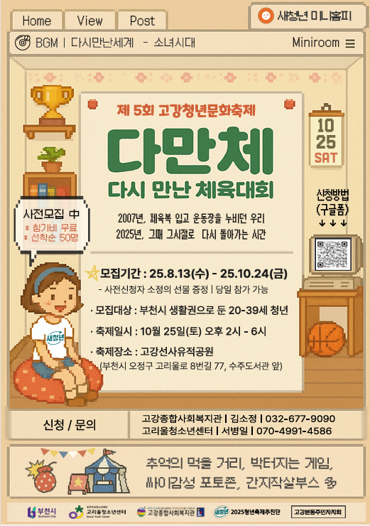 * 본 행사는 고강본동주민자치회의 지원을 받아 고강종합사회복지관, 고리울청소년센터 꾸마에서 진행합니다.