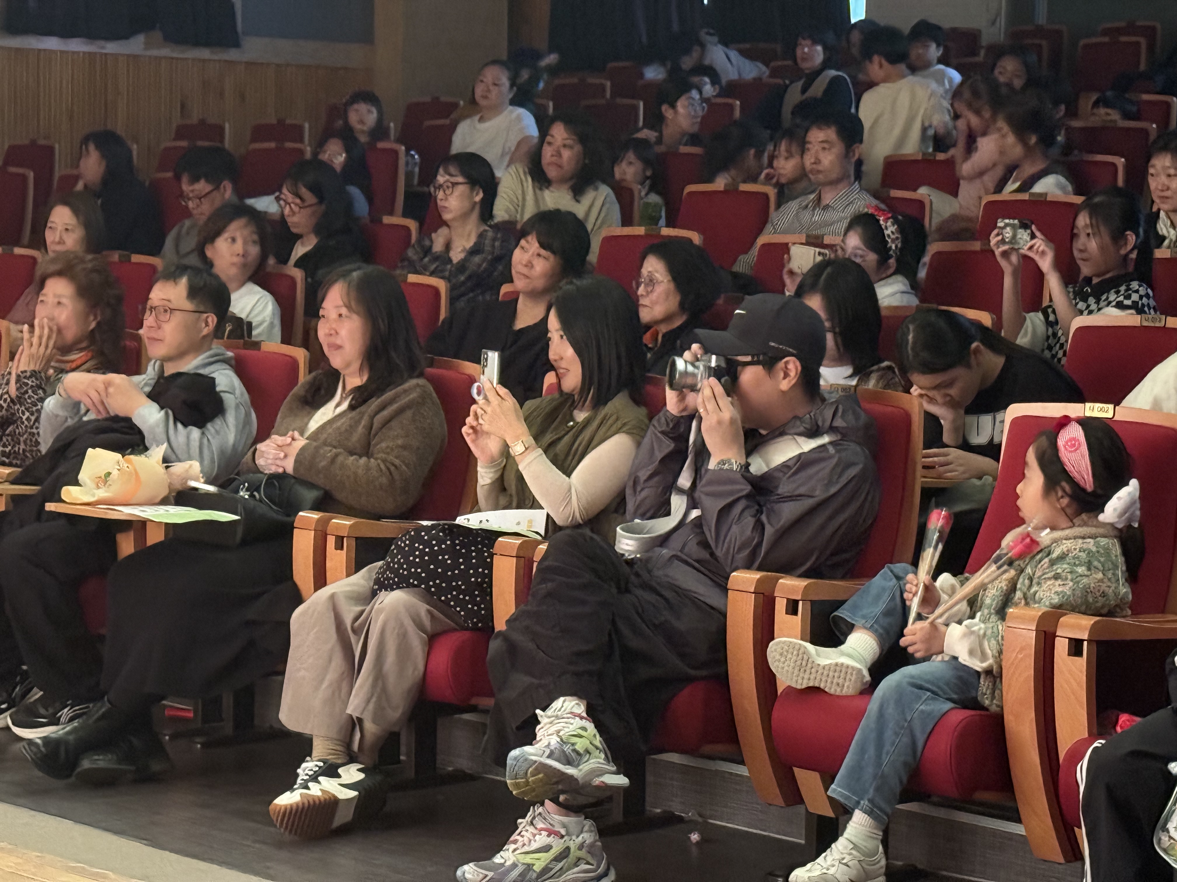 무대가 끝나고 가족들은 아이들에게 꽃다발을 건네며 “정말 잘했어!”, “우리 아들, 우리 딸 최고야!” 하고 축하를 전했습니다.