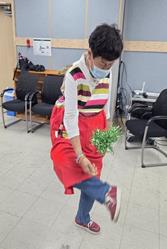 즐거운 모습으로 아들과 함께 허진희님이 복지관 청수정으로 들어옵니다.