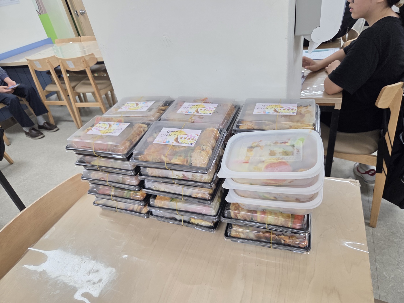 만든 전을 예쁘게 포장해서 나눔을 준비해요~