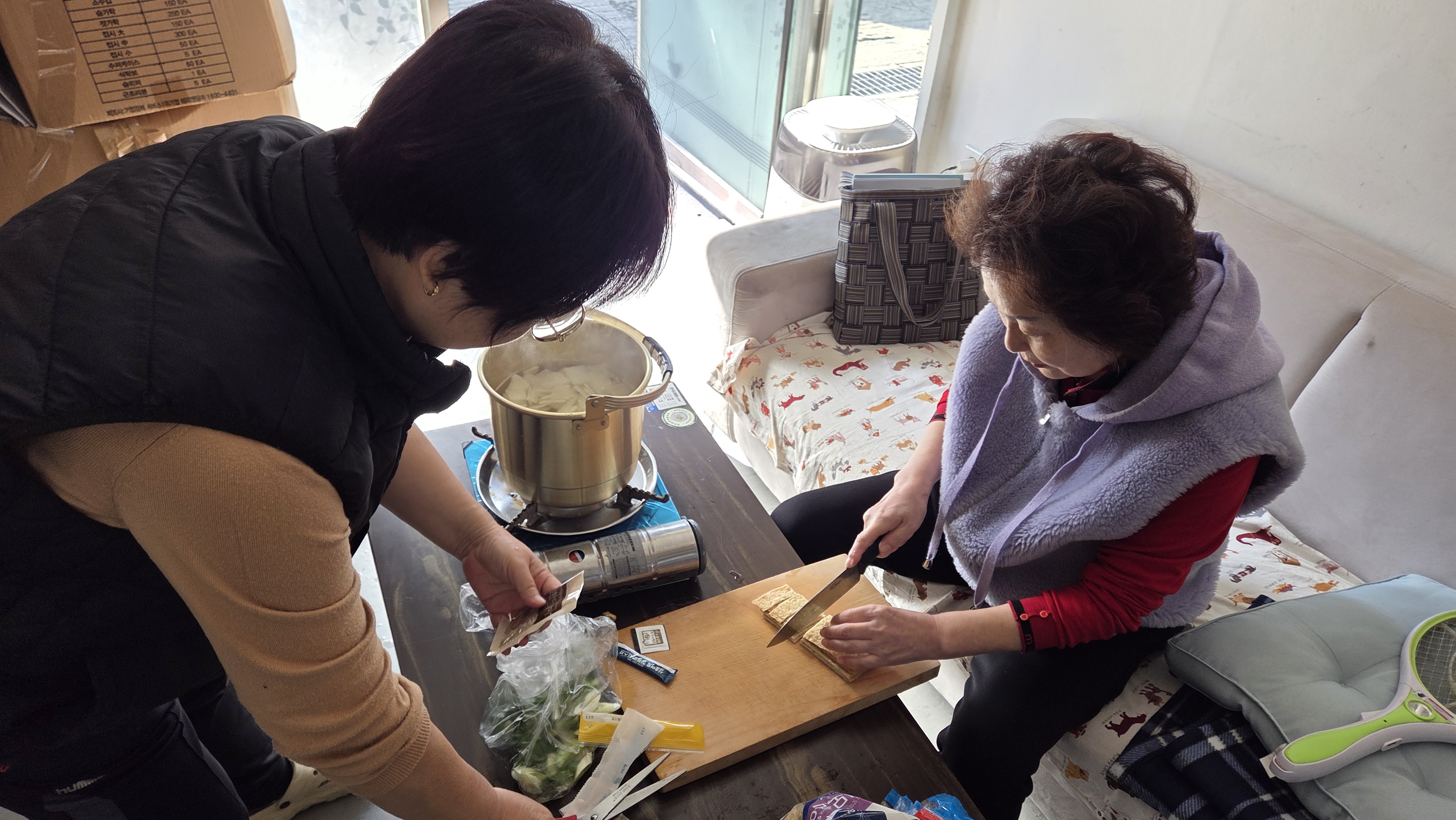 특히 어묵탕이 인상 깊었습니다. 한 냄비 가득 끓여져 올라오자 수증기가 올라오며 자리 전체에 온기가 번졌습니다. “이거 국물 끝내주네” 하며 어르신들께서 웃으실 때, 통장님들께서는 “추운 날엔 따뜻한 국물이 제일이지요” 하고 담담히 답하셨습니다. 어르신들께서는 반찬 하나하나 맛을 보며, “이렇게 많이 준비해주셔서 고맙다”는 인사를 잊지 않으셨고, 통장님들께서는 “한번 같이 먹으면 즐겁잖아요” 하고 웃으셨습니다.