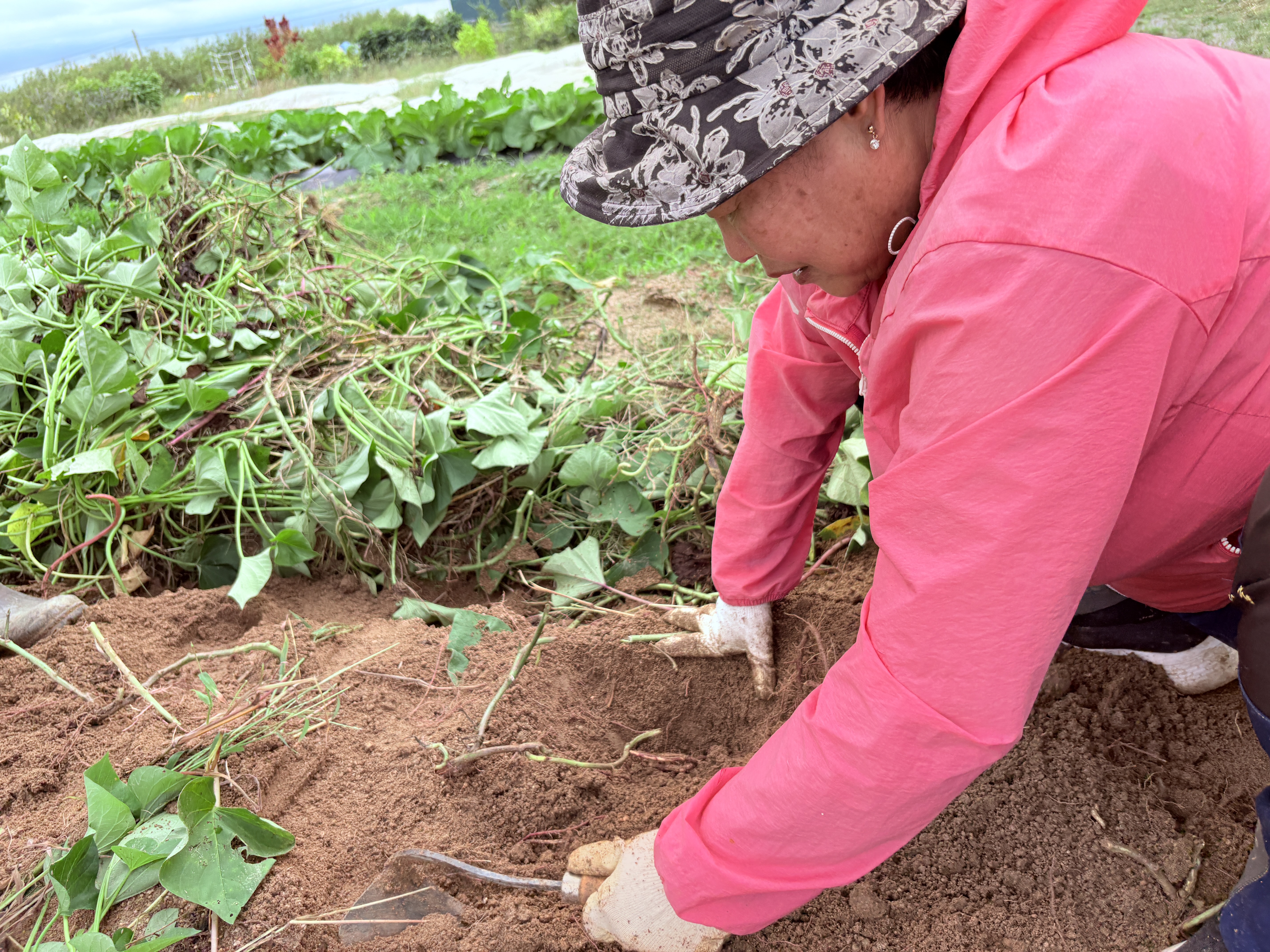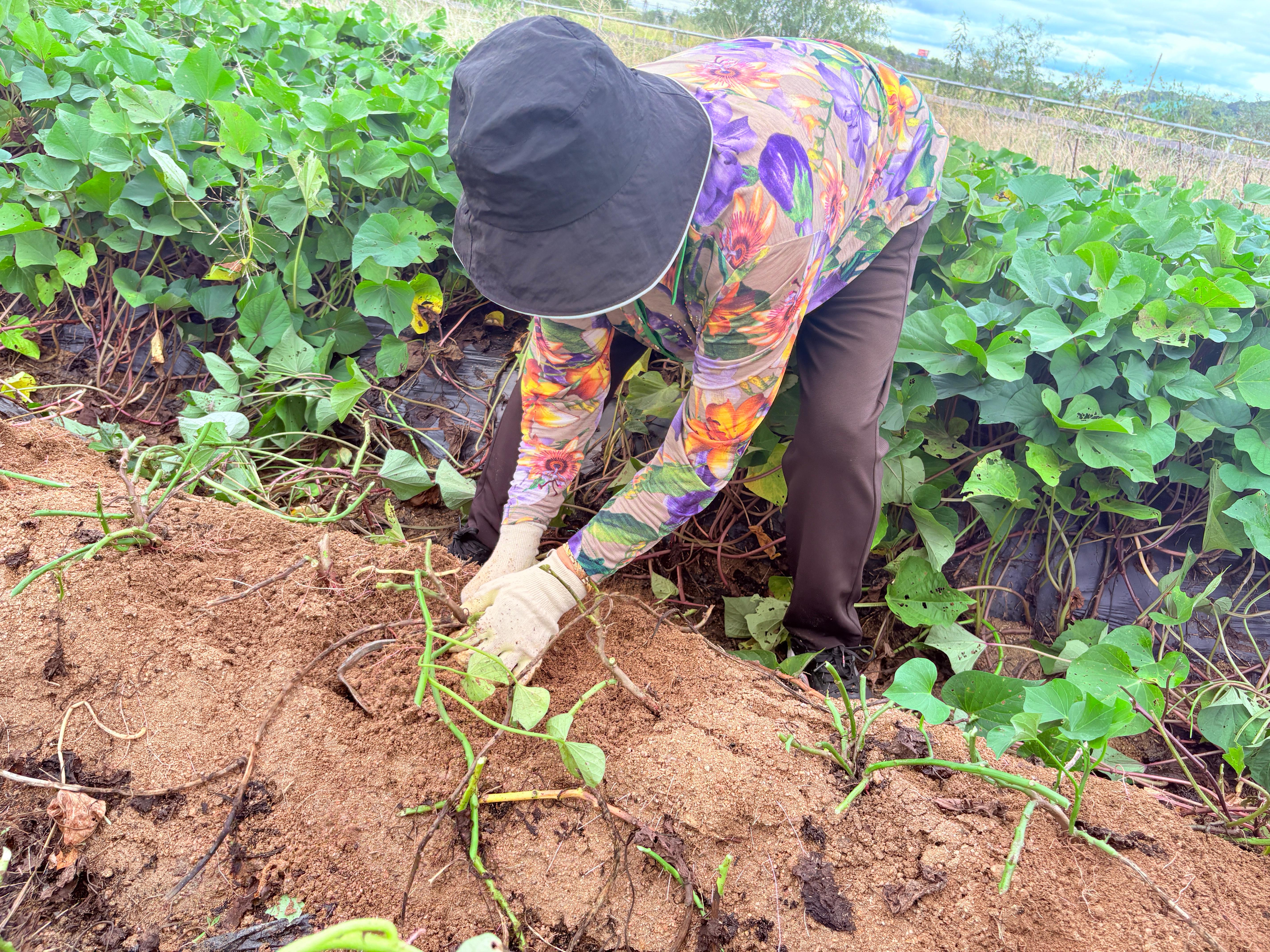 "이 고구마 줄기도 나중에 가져가야겠네~"