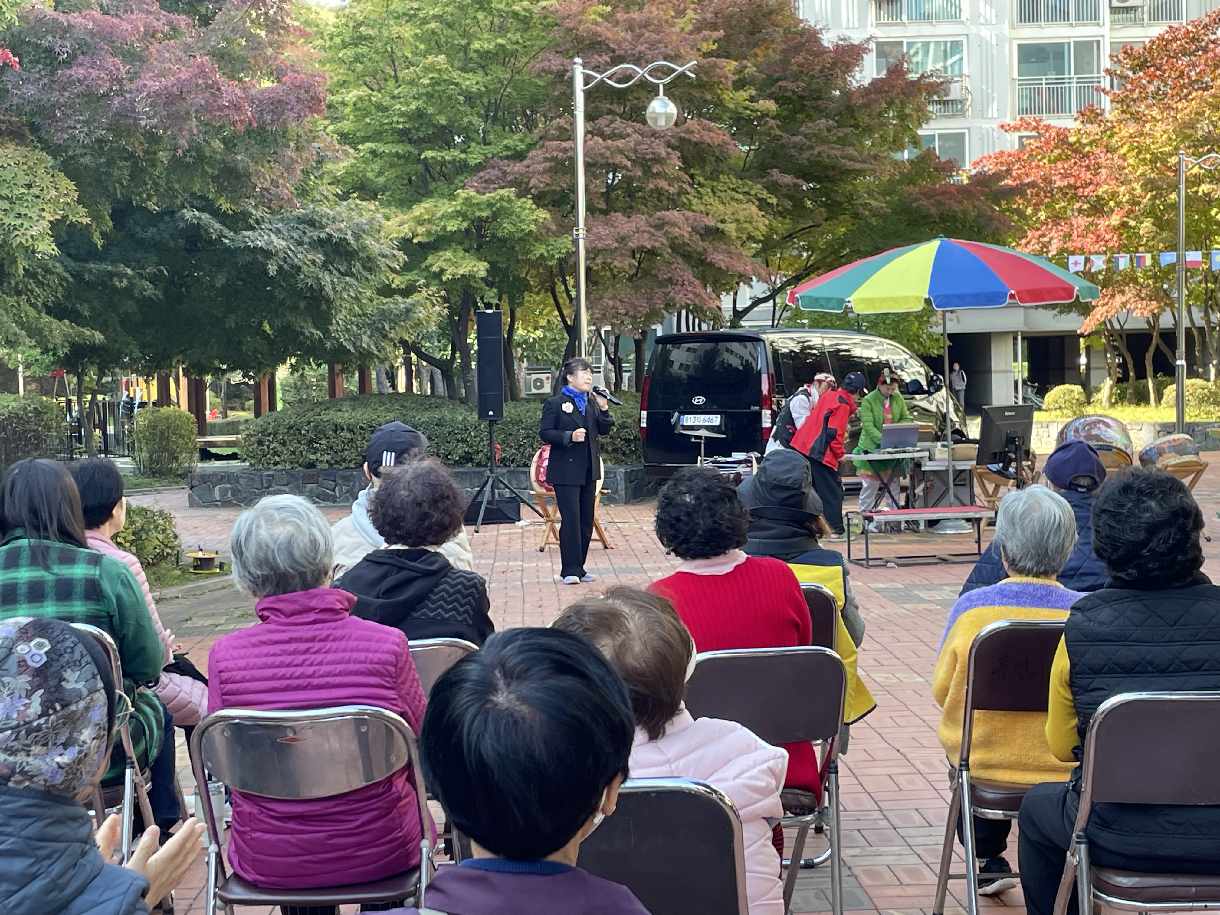 행사를 함께해주신 1단지 관리사무소 김정순 센터장님과 임차인대표 임종희 회장님, 그리고 복지관 최종복 관장님의 인사가 이어지고, 바로 노래자랑으로 이어졌습니다.