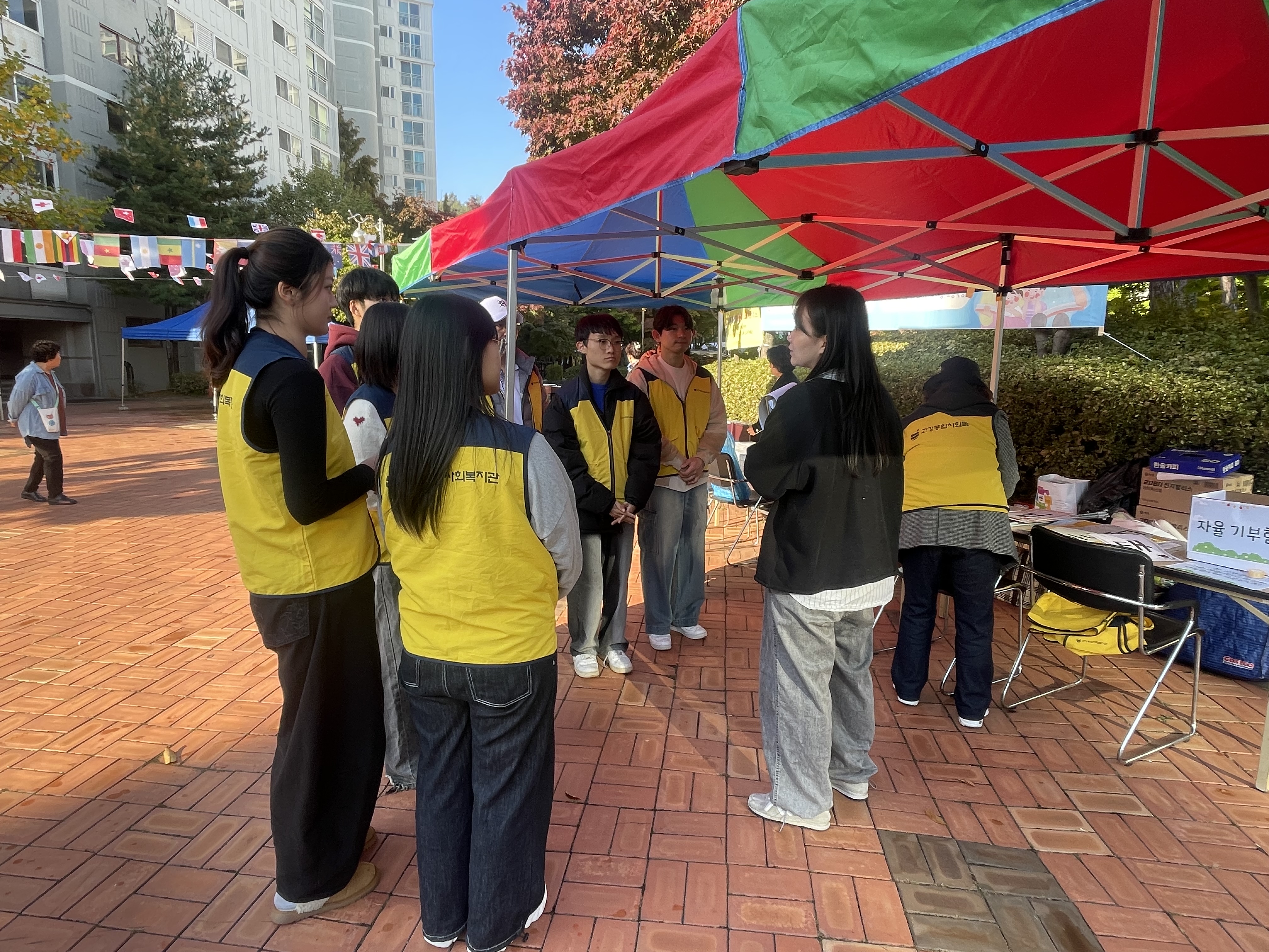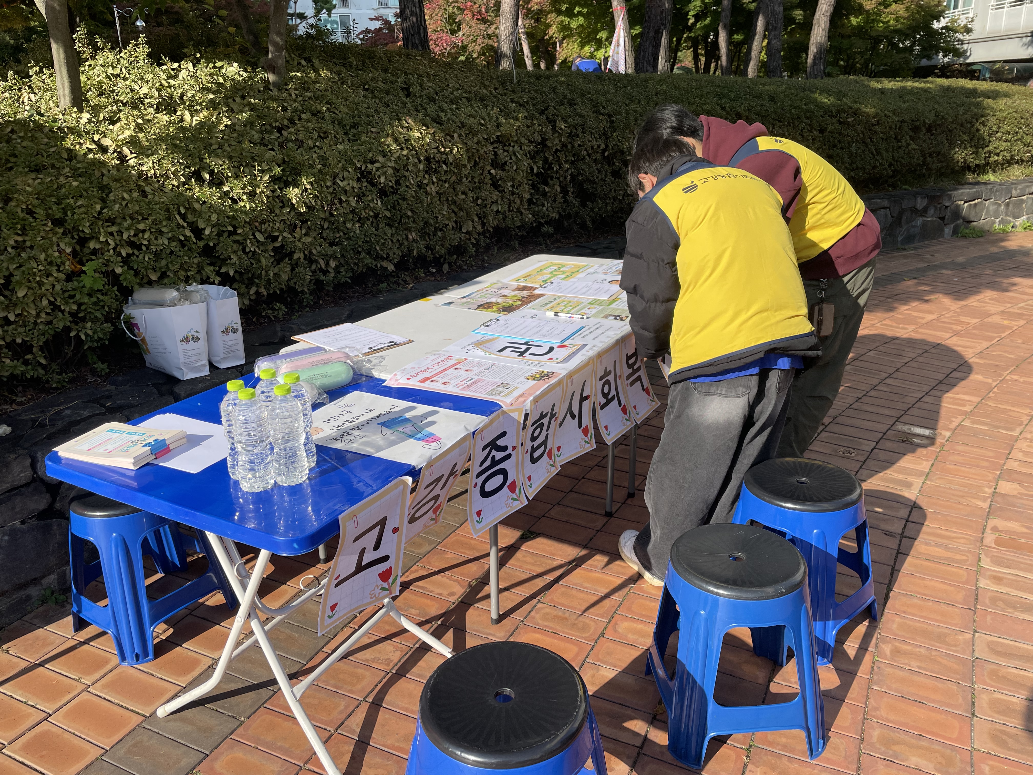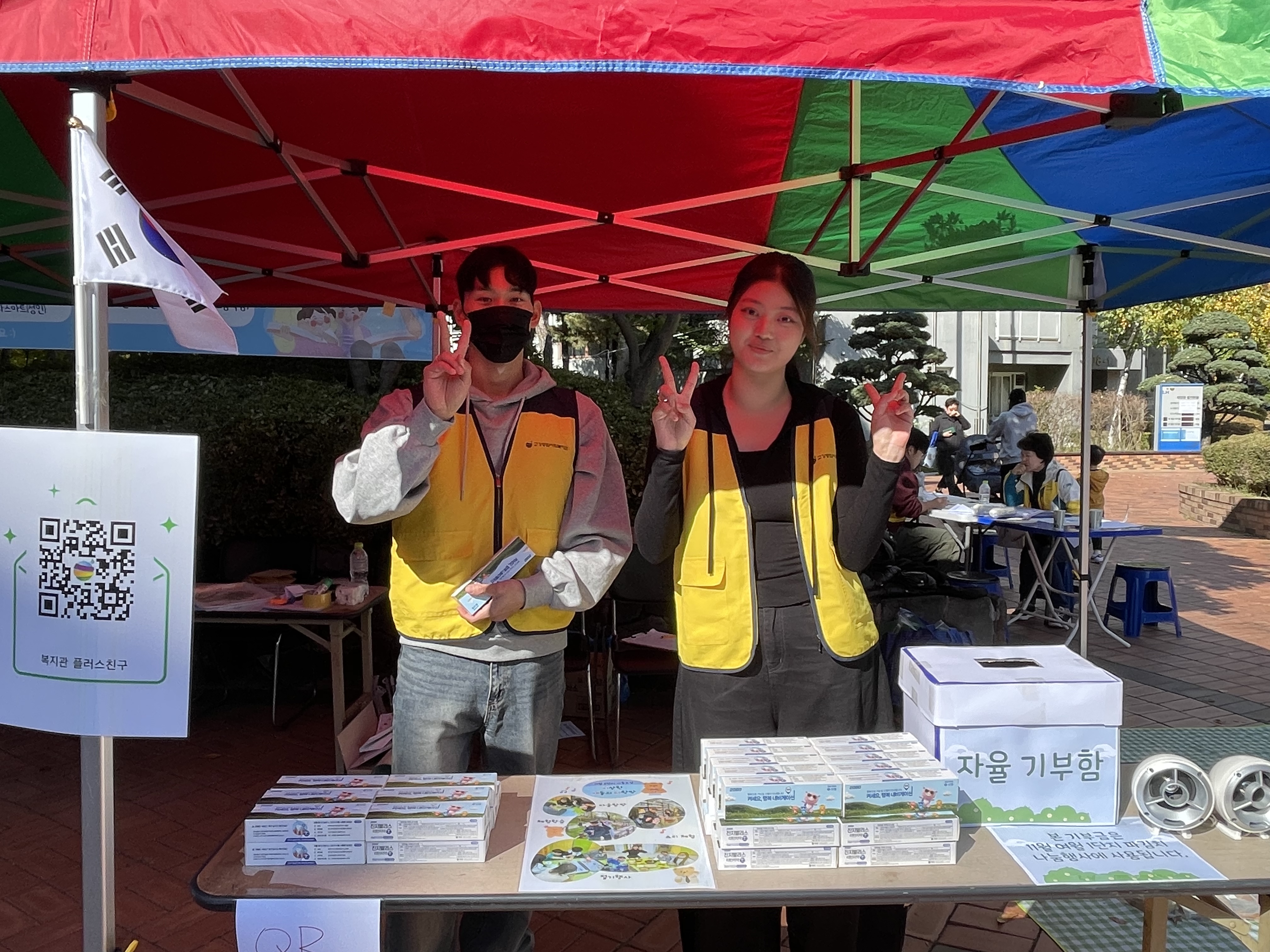 9시, 광장 앞 부스를 점검하고 봉사자 안내를 시작했습니다.