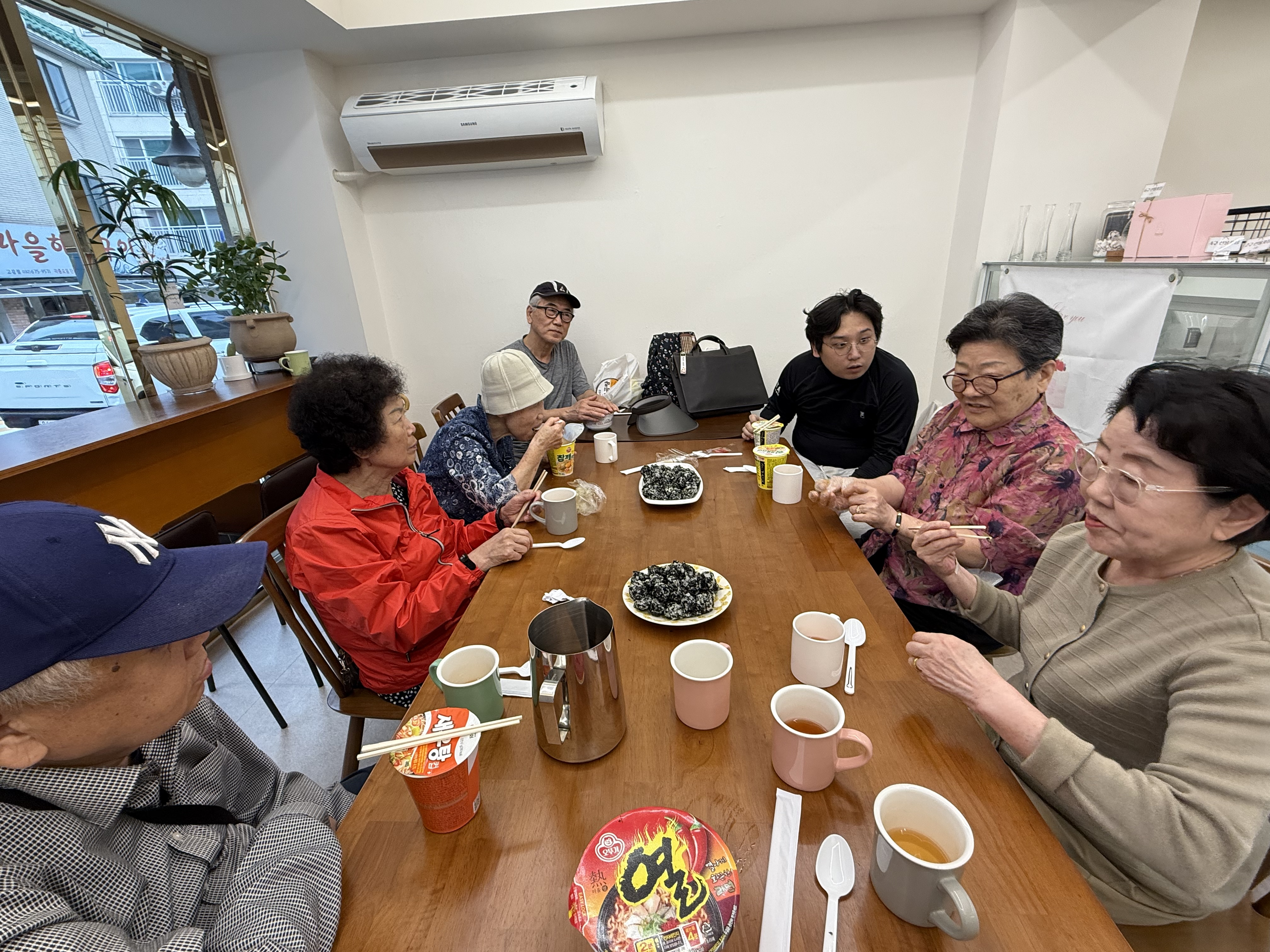 긴 명절을 앞두고 식사와 관계에 대한 욕구가 있던 주민들에게는 반가운 제안이었습니다. 사장님과 일정을 조율하고 모든 사람에게 부담없이 다가갈 수 있는 메뉴인 ‘컵라면’으로 결정하였습니다.