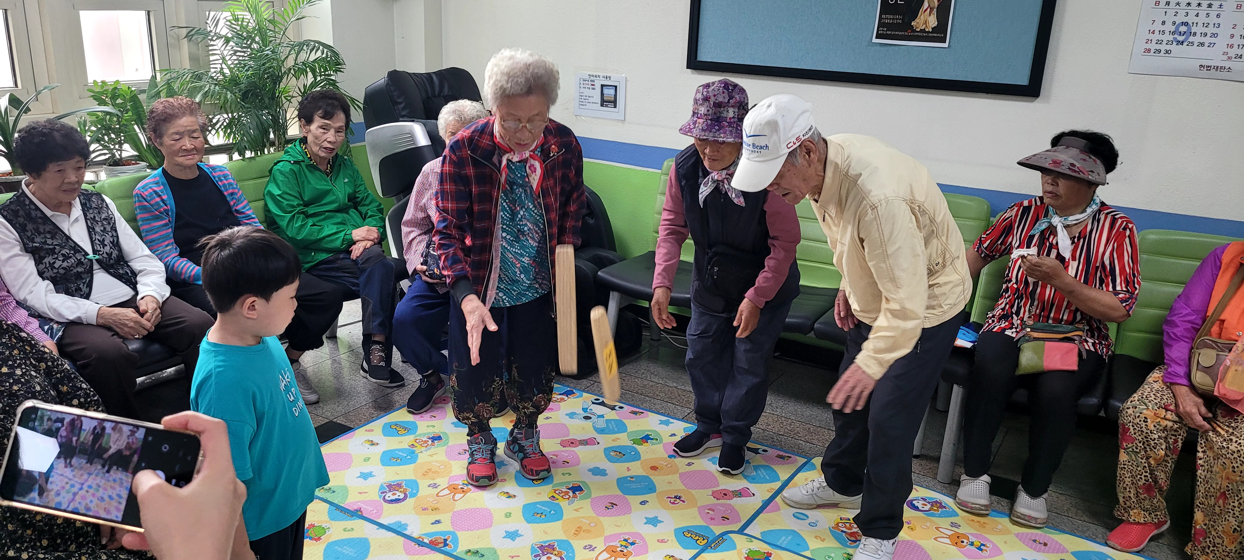 아이들이 오기 전 어르신들은 2인 1조 조를 짜고 아이들을 기다렸습니다.