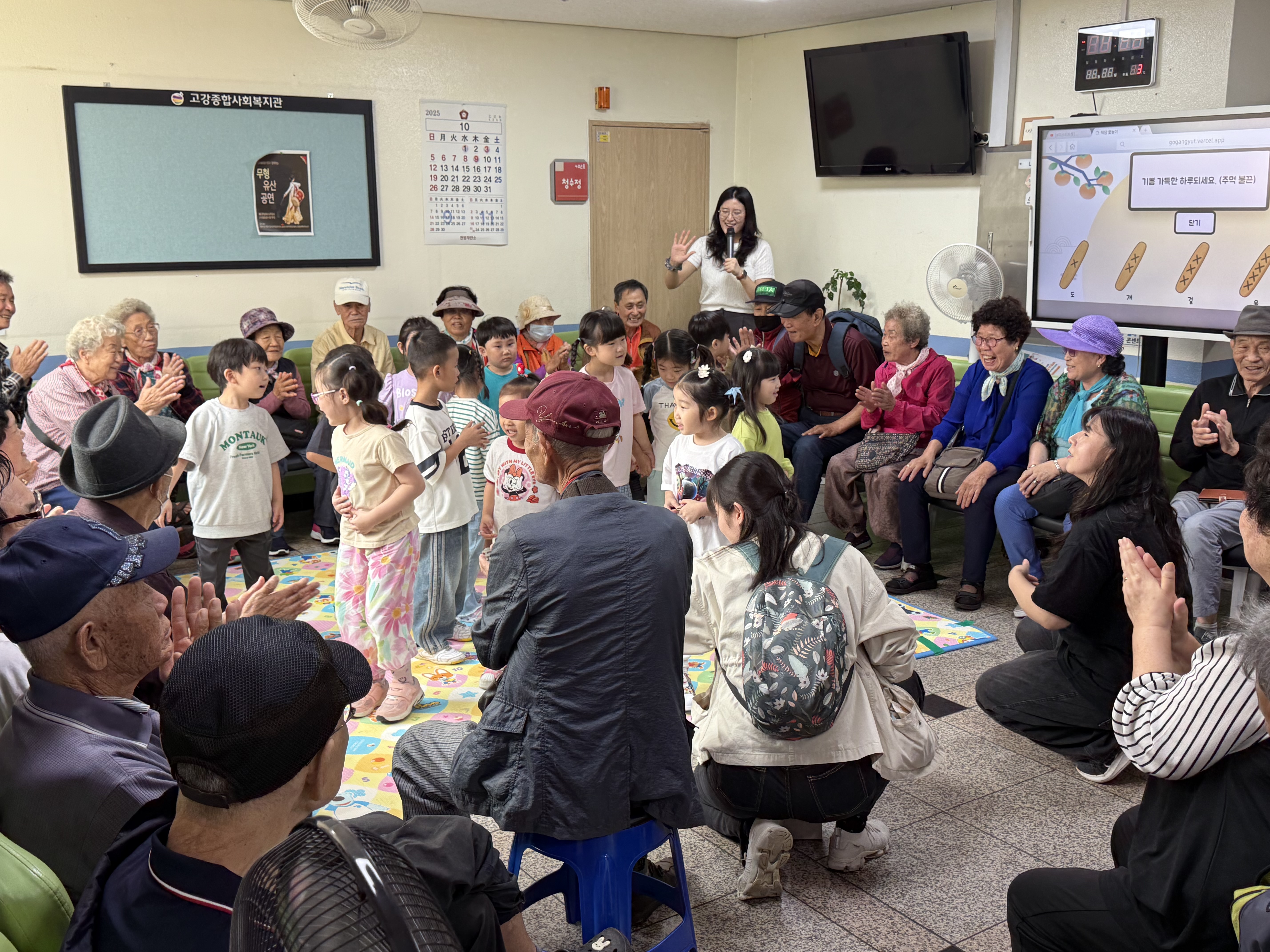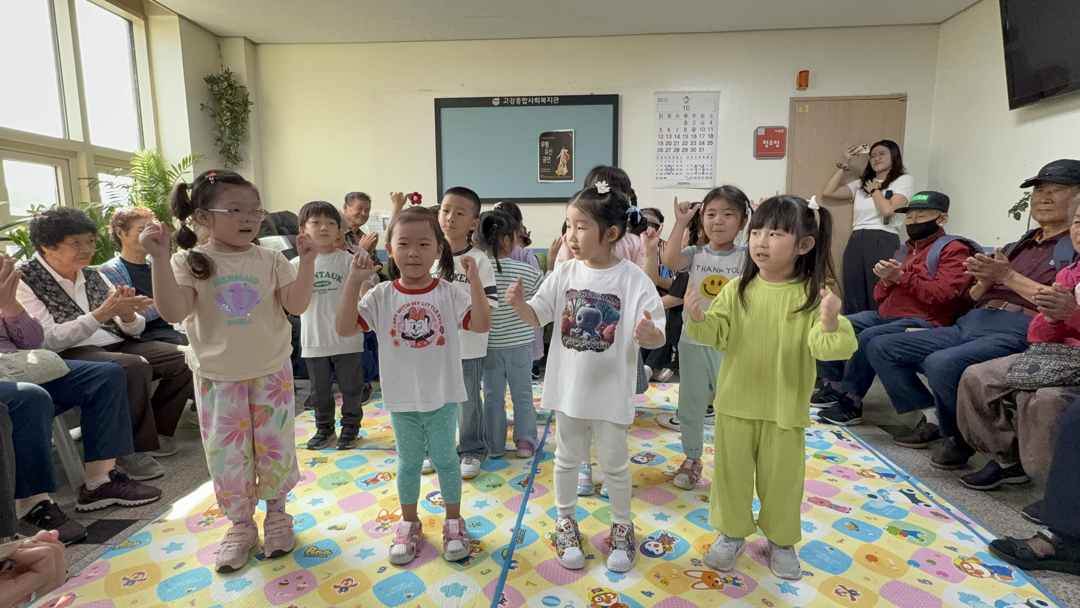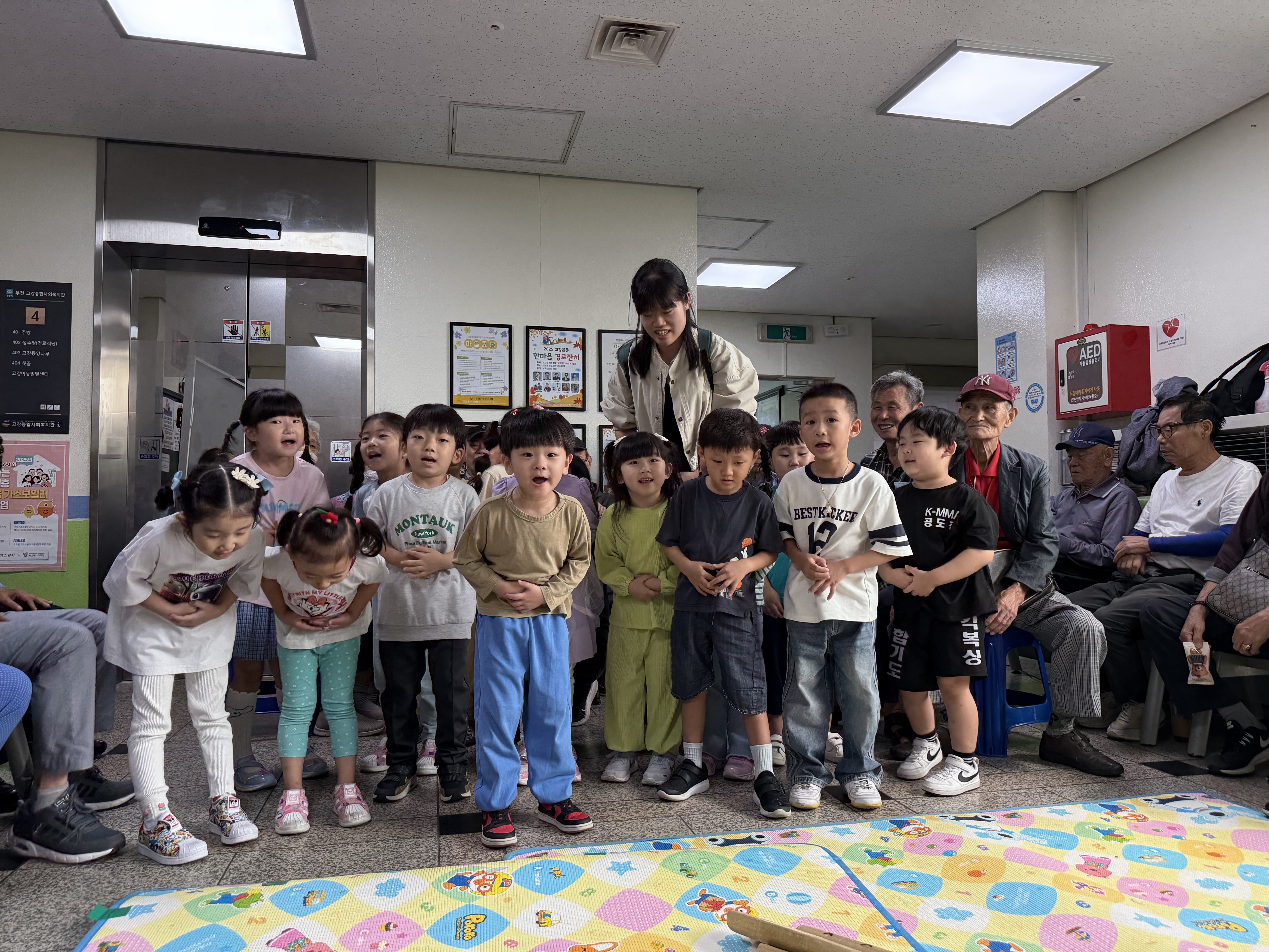 10월 1일 4층 로비에서는 고강어린이집 아이들을 기다리는 어르신들로 가득했습니다.