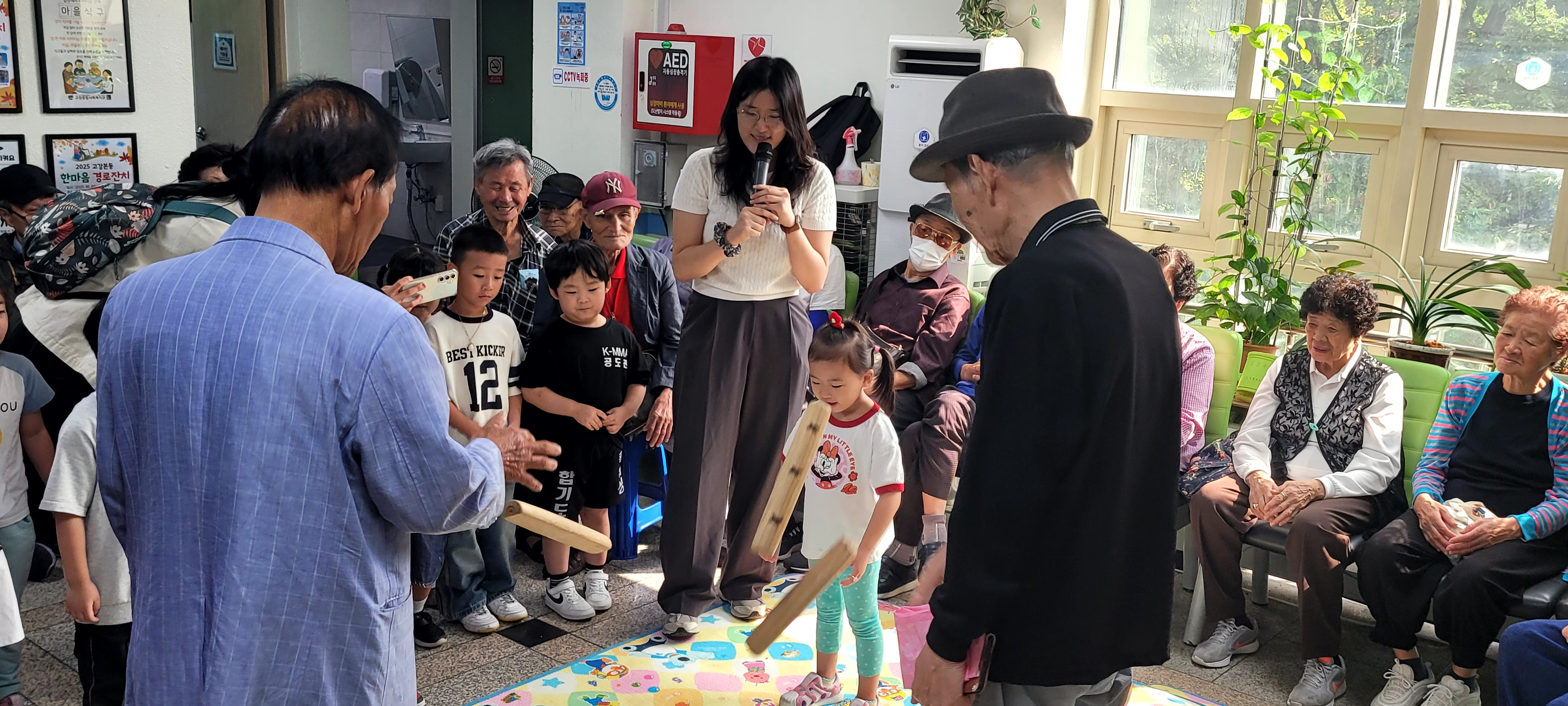 아이들은 한명씩 나와 어르신과 윷을 던졌습니다.