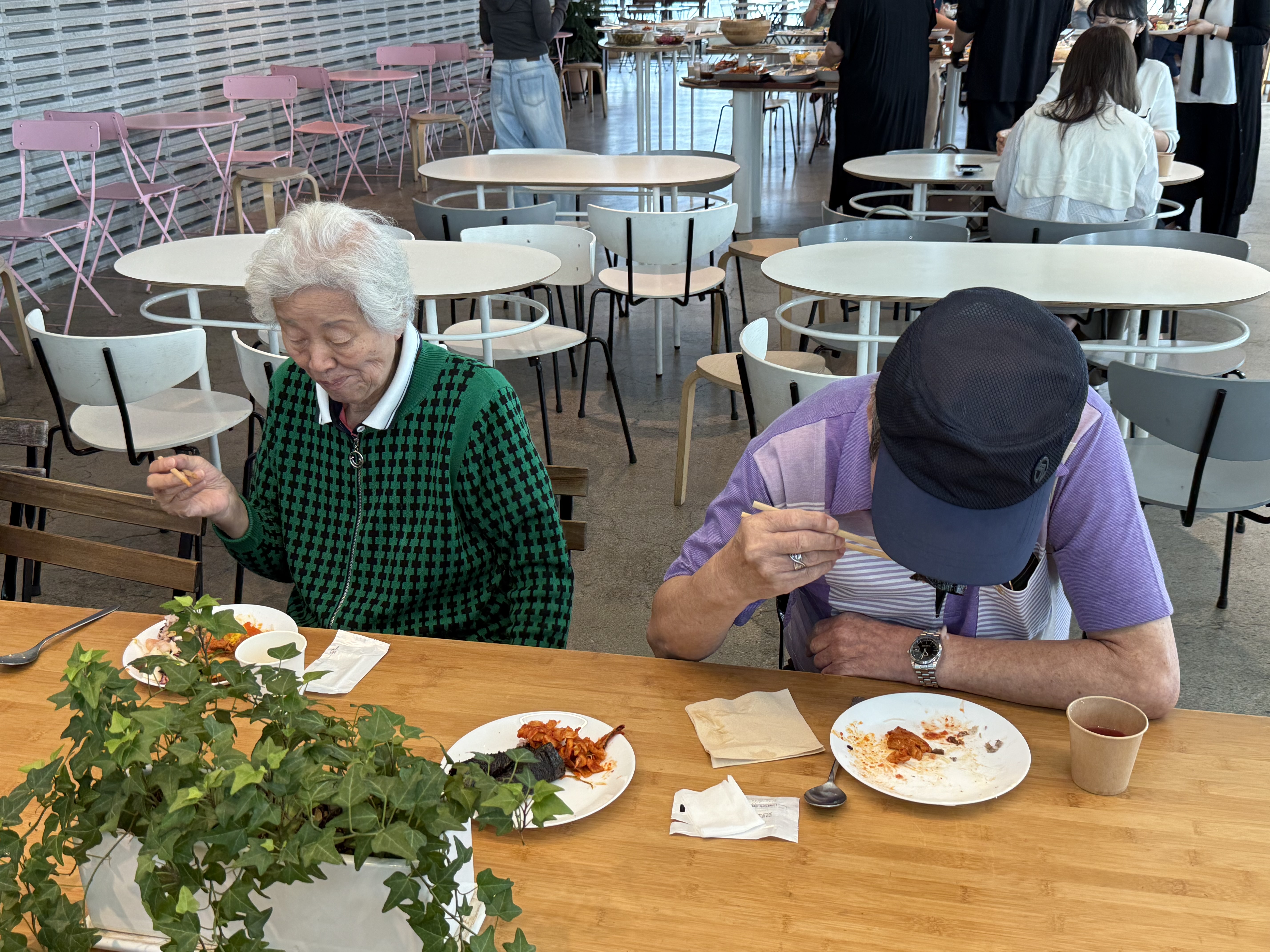 처음에는 어색한 듯하셨지만, 첫 접시를 담을 때 같이 가서 설명드리고 음식을 권해드리니 금방 익숙해져 뷔페를 마음껏 누리셨습니다.