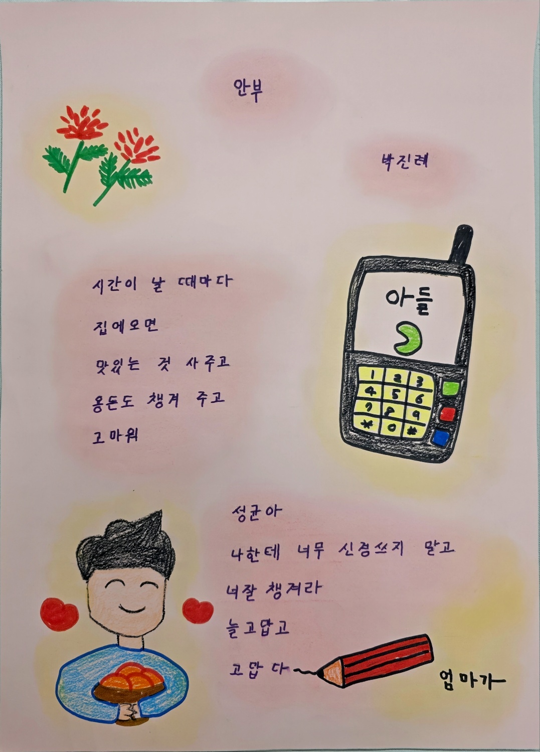 글자를 배우고, 가족에게 전하고 싶은 말을 시화로 표현한 학습자분들의 작품은 배움의 결실을 잘 보여주었습니다.