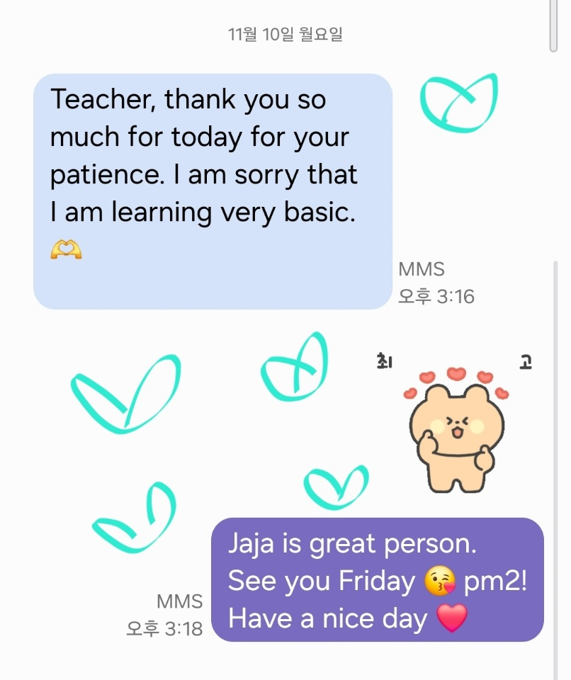 jaja 역시 수업이 끝날 때마다 “오늘도 너무 즐거웠어요!”라며 감사의 인사를 전합니다.