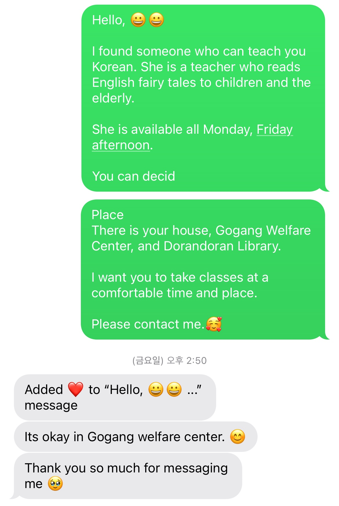 “완두콩님, 혹시 영어로도 소통이 가능한가요?” “그럼요! 한국어도 함께 알려드릴 수 있어요. 저도 영어를 배우고 좋네요 ㅎㅎ”