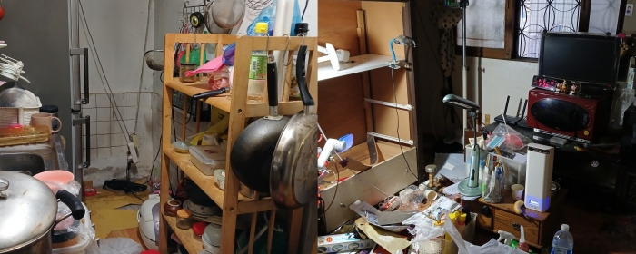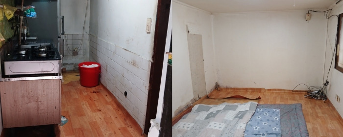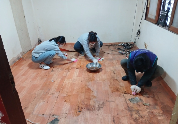 자신의 집청소도 하기 어려운데 이웃 집 청소를 위해 몸을 아끼지 않고 일해 주신 분들로 인해 바닥과 벽이 드러났습니다.
