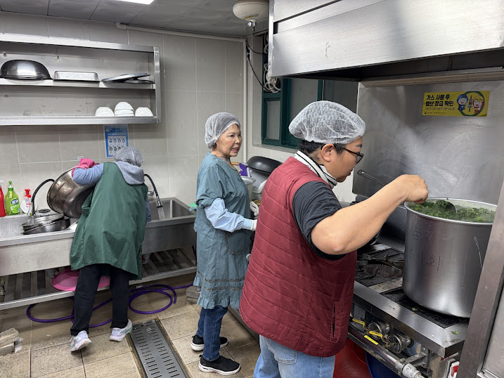 다음 날 아침, 고리울청소년센터 공유주방 문을 열고 들어선 순간, 깜짝 놀라고 말았습니다. 텅 비어 있을 줄 알았던 주방이 평소보다 더 많은 봉사자분들로 북적이고 있었기 때문입니다.