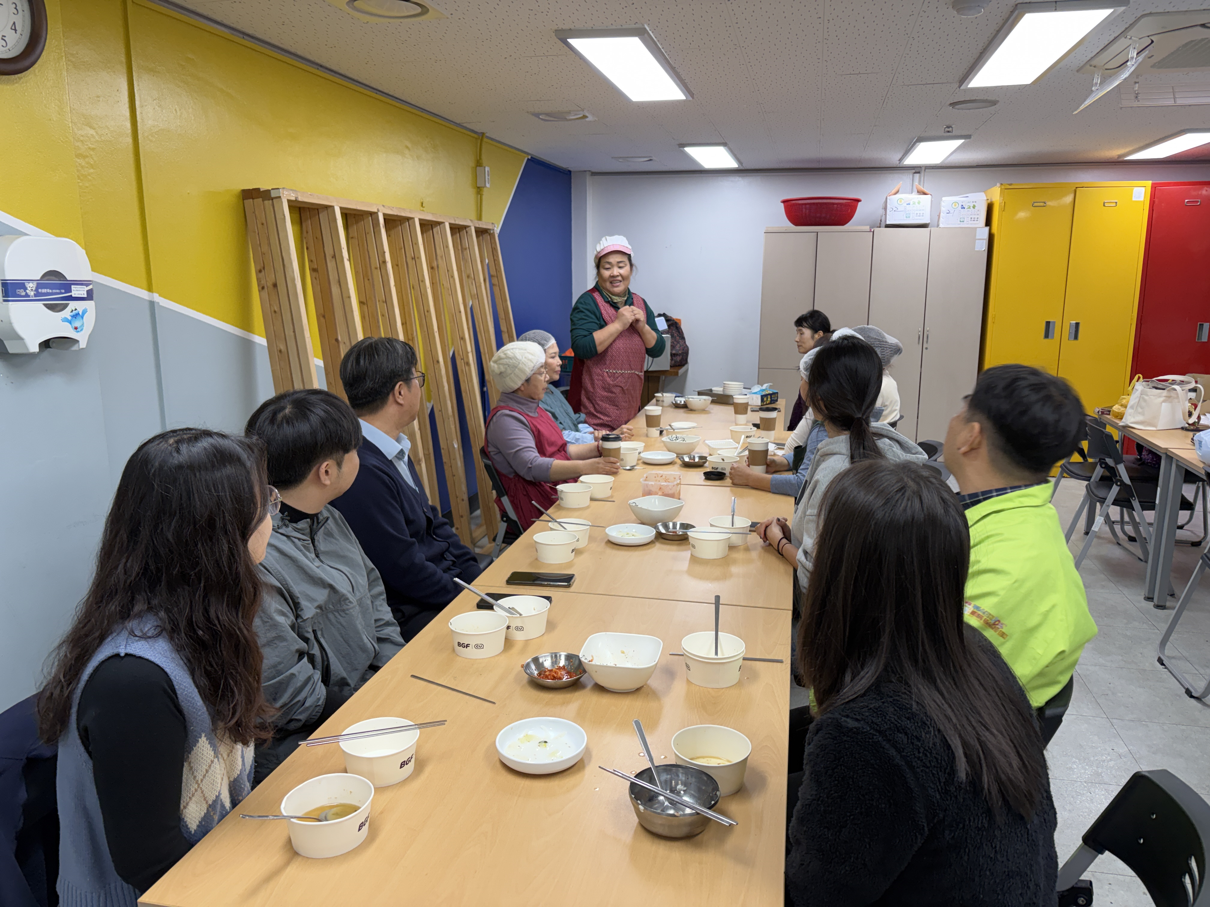 조리를 마친 후에는 아주 특별한 점심 식사 자리가 마련되었습니다. 어쩌면 올해 다 함께 식사하는 마지막 자리가 될지도 모른다는 생각에, 고강종합사회복지관 최종복 관장님과 고리울청소년센터 신용식 센터장님, 그리고 함께 식사할 수주팀과 고리울청소년센터 직원 분들이 모두 모여 봉사자분들과 둘러앉았습니다.